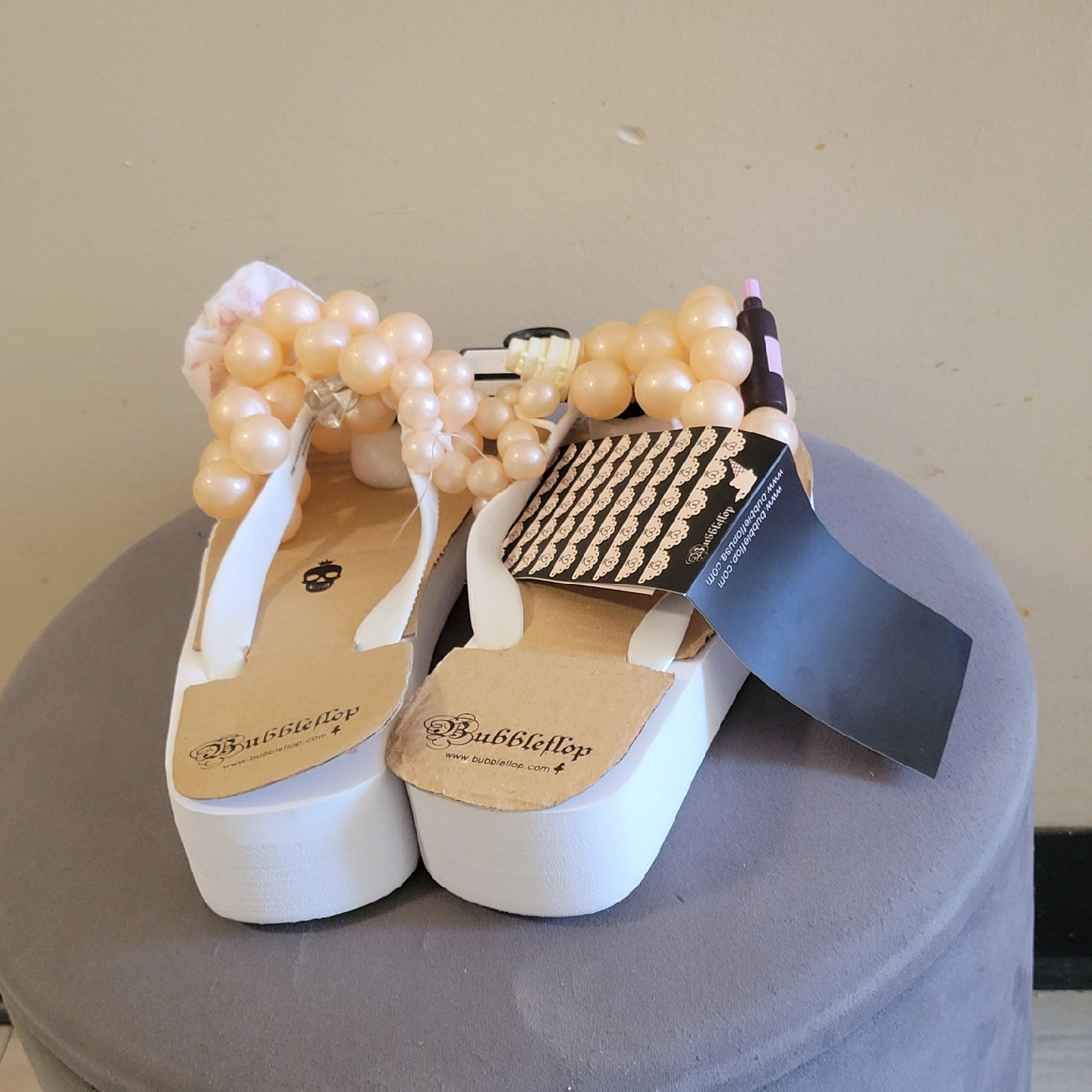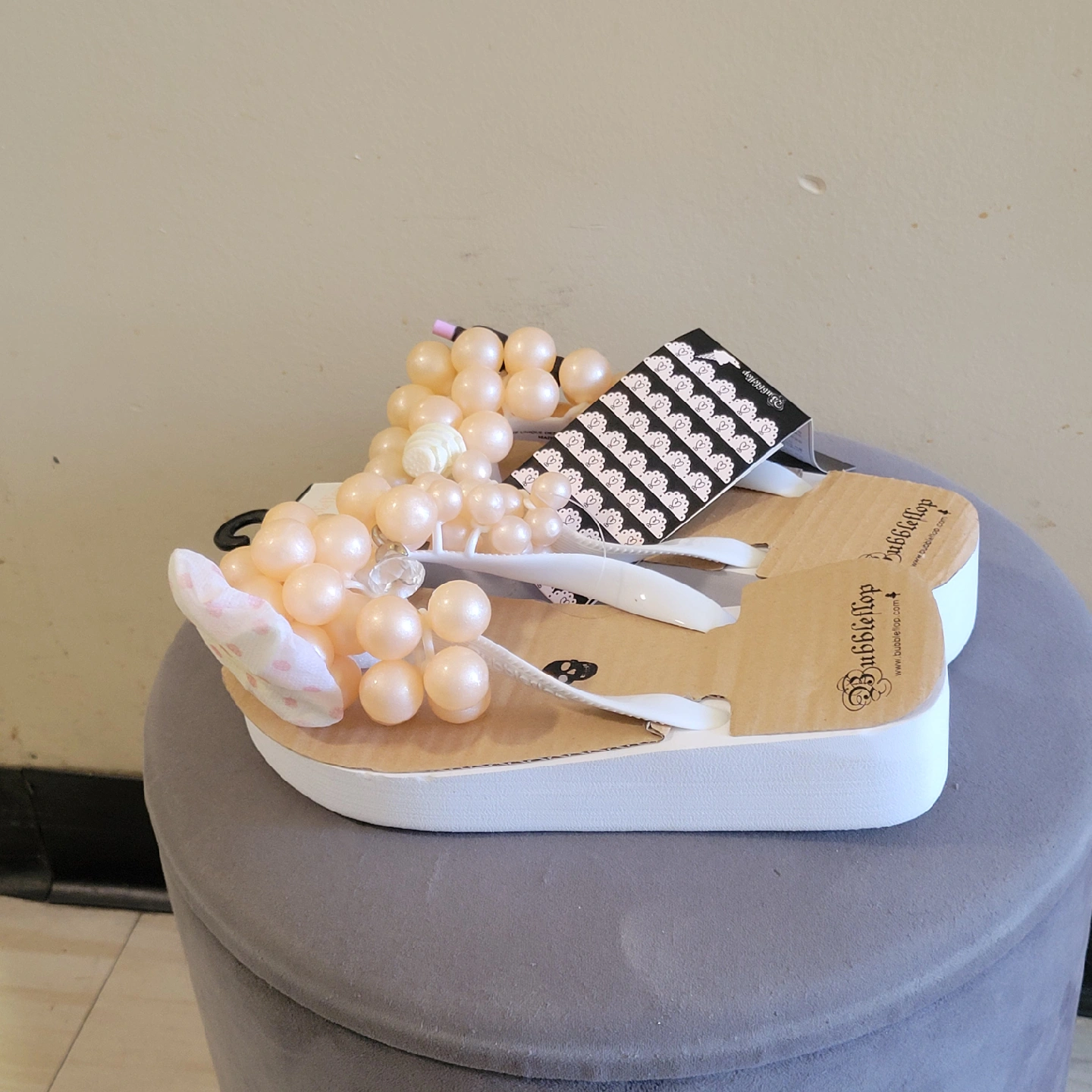 These are Bubbleflop flip flops with a unique embellished design! They're perfect for adding a fun touch to your summer outfits. Check out the pictures for the details