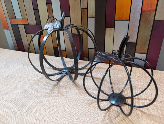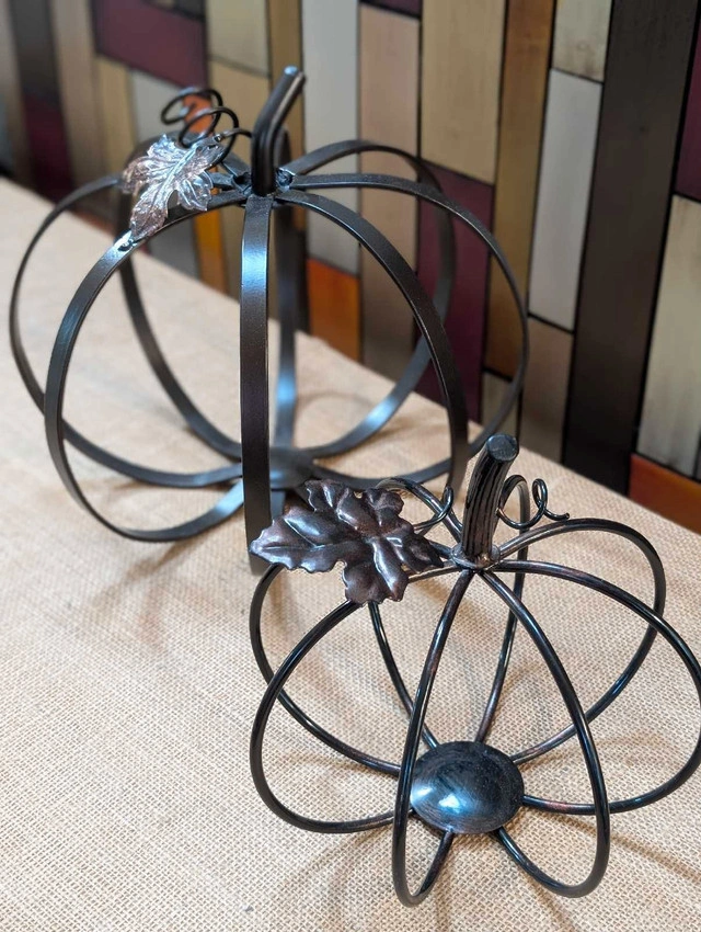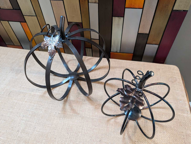 Large and medium metal pumpkin SET in a beautiful bronzy brown. Gorgeous Fall decor! In perfect condition!