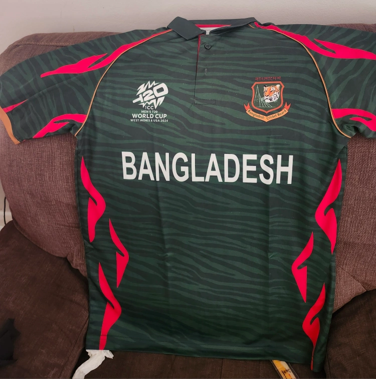 Selling a Bangladesh Cricket World Cup 2024 polo shirt in size medium. It's a premium fit tee made with Dri-Fit 100% polyester material. Perfect for showing your support!