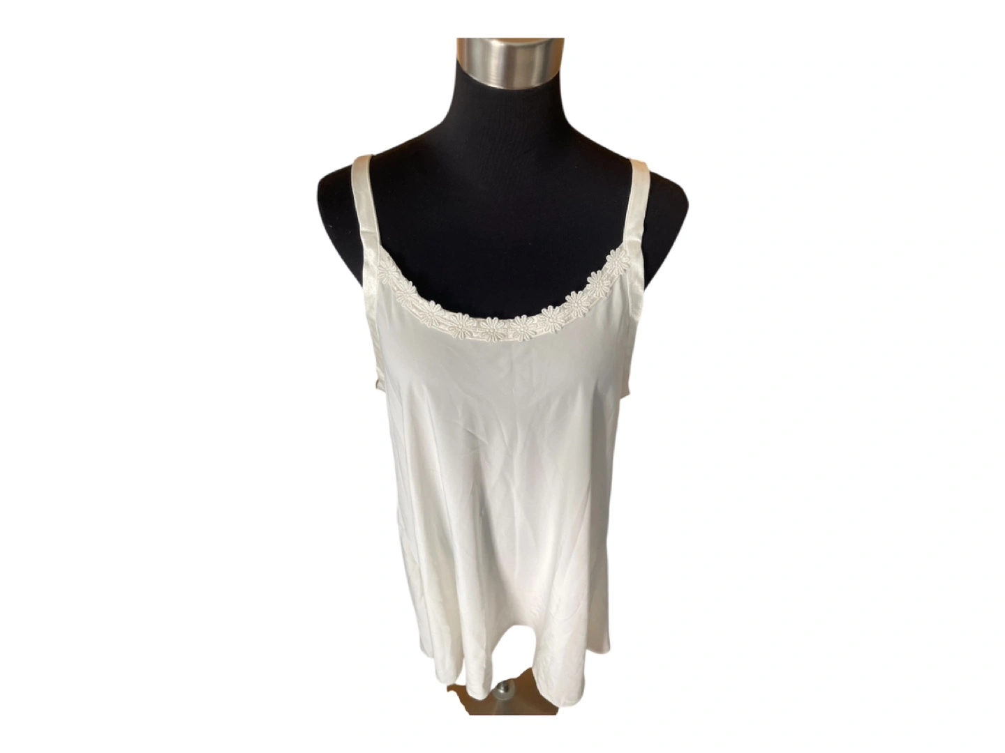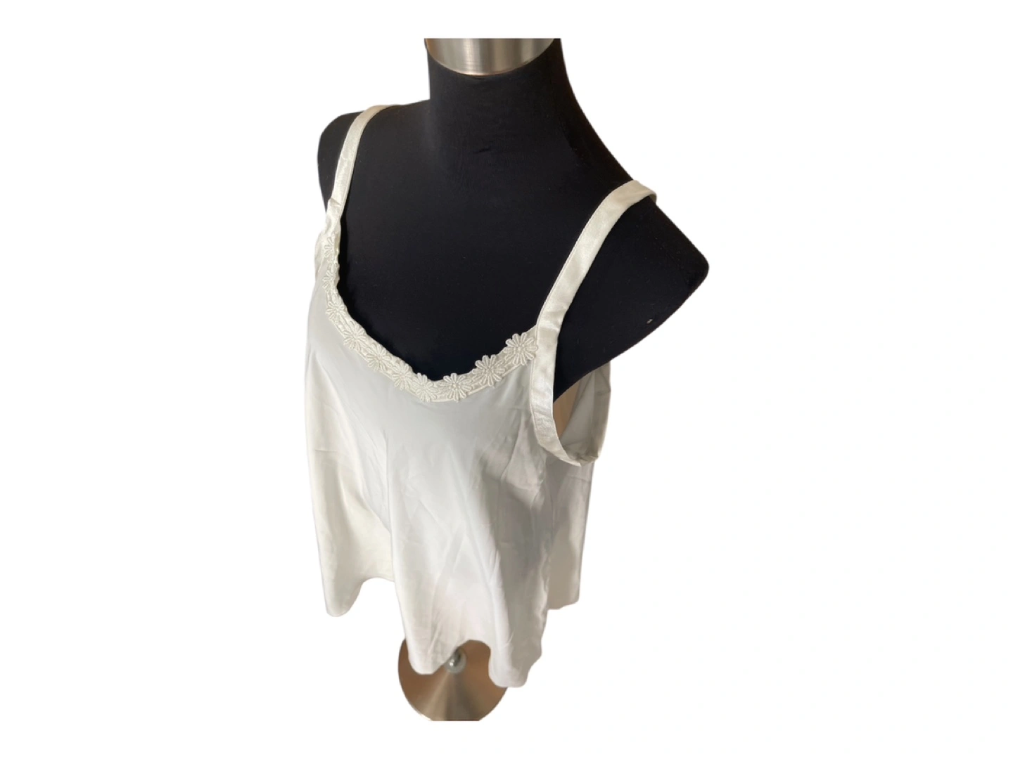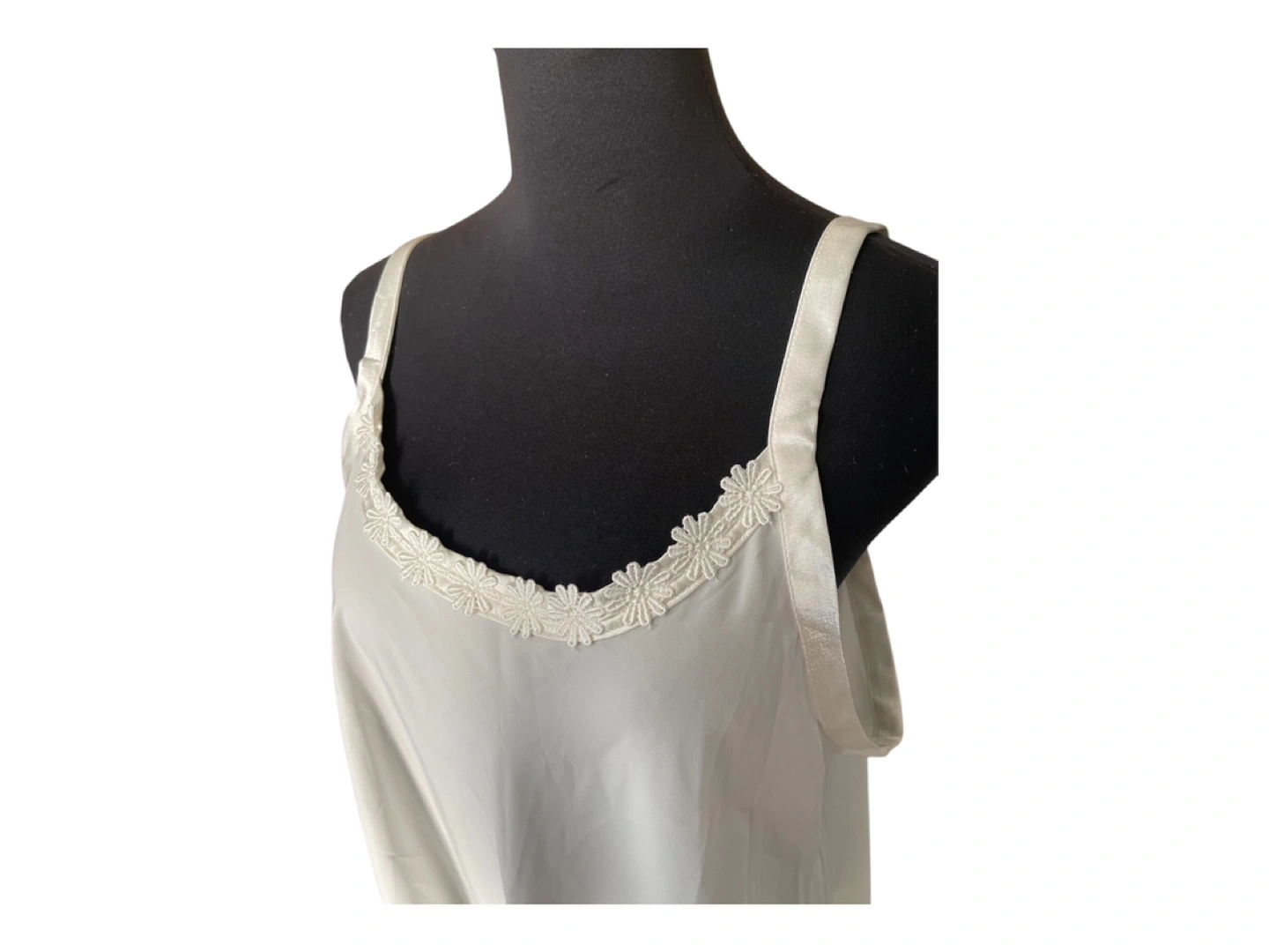 RARE Vintage 90s Designer Marks & Spencer White Mini Slip Dress Embroidered Flower Detailing Spaghetti Straps S/M