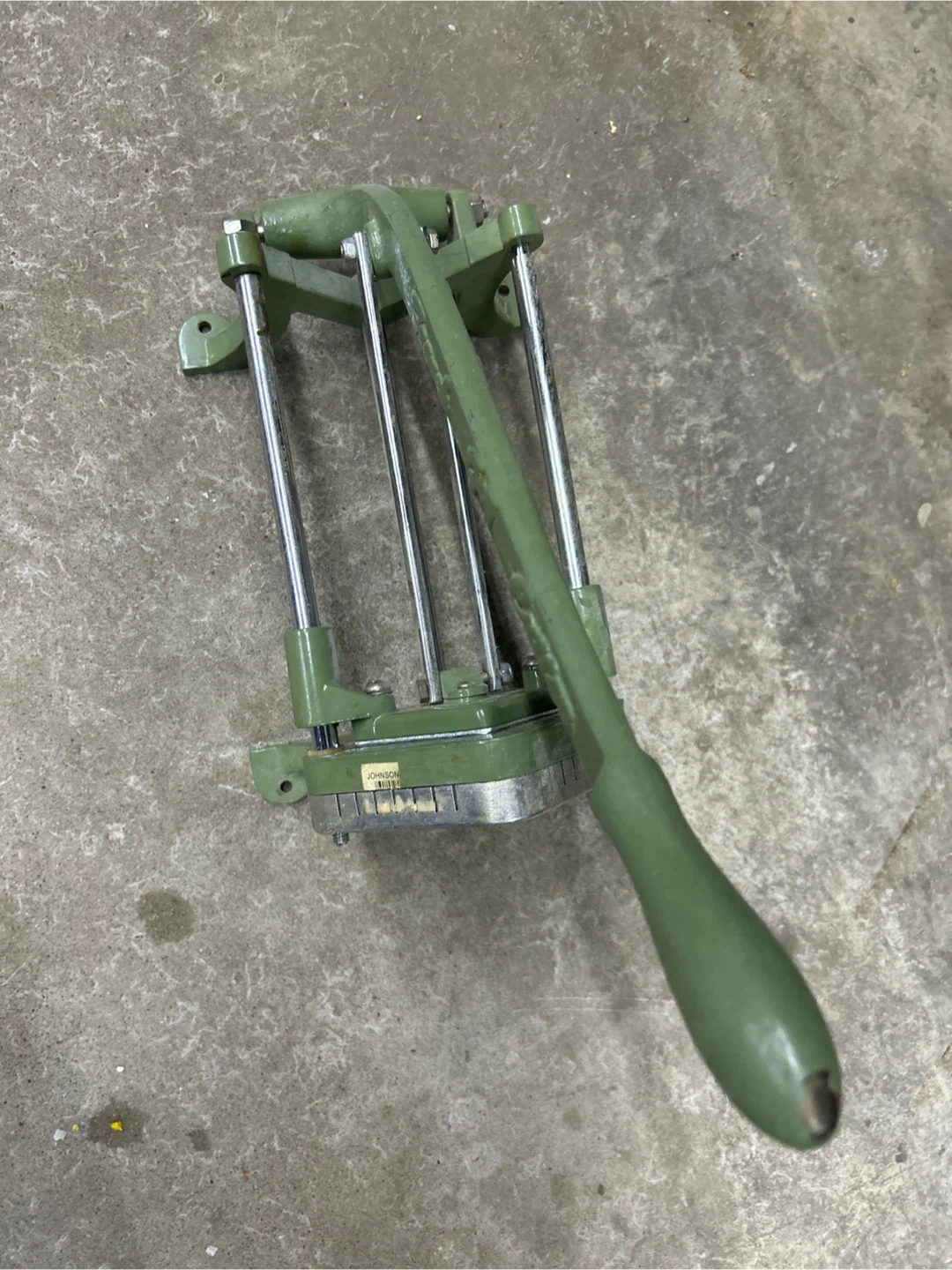 Here's a commercial-grade french fry cutter, perfect for making a large batch of fries at home or in a restaurant! It's in good condition and ready to use