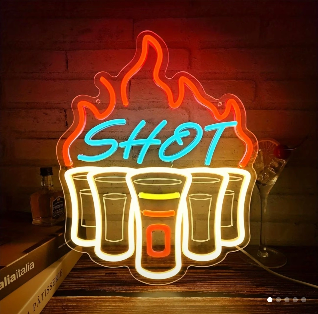 185Add some fun to your space with this cool SHOT neon sign! It's perfect for a bar area or any room that needs a bit of light and character. The sign comes with a hanging chain (40cm/15.8in) and a USB cable (150cm/5ft) for easy setup. The dimensions are 29.5cm/11.6in x 37cm/14.6in