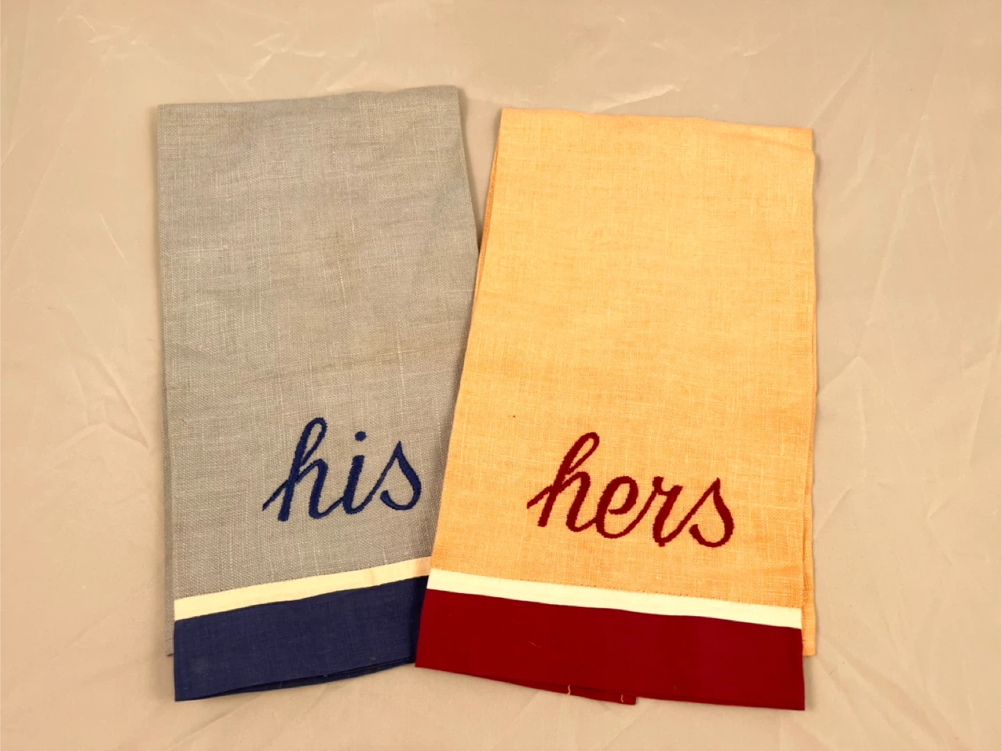 Buy & SellVintage his and hers linen finger towels new conditionVintage his and hers linen finger towels new condition$14Groovy pair of linen finger towels in brand new conditionConditionLike newWHERE TO MEETSohoView MapSELLERMegCentral London594 reviews0 chats·0 favorites·5 views