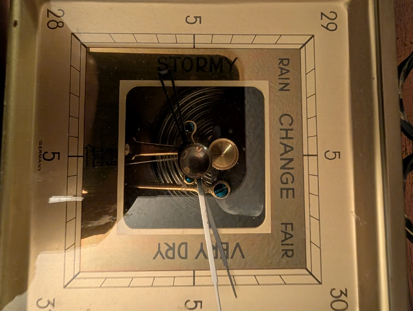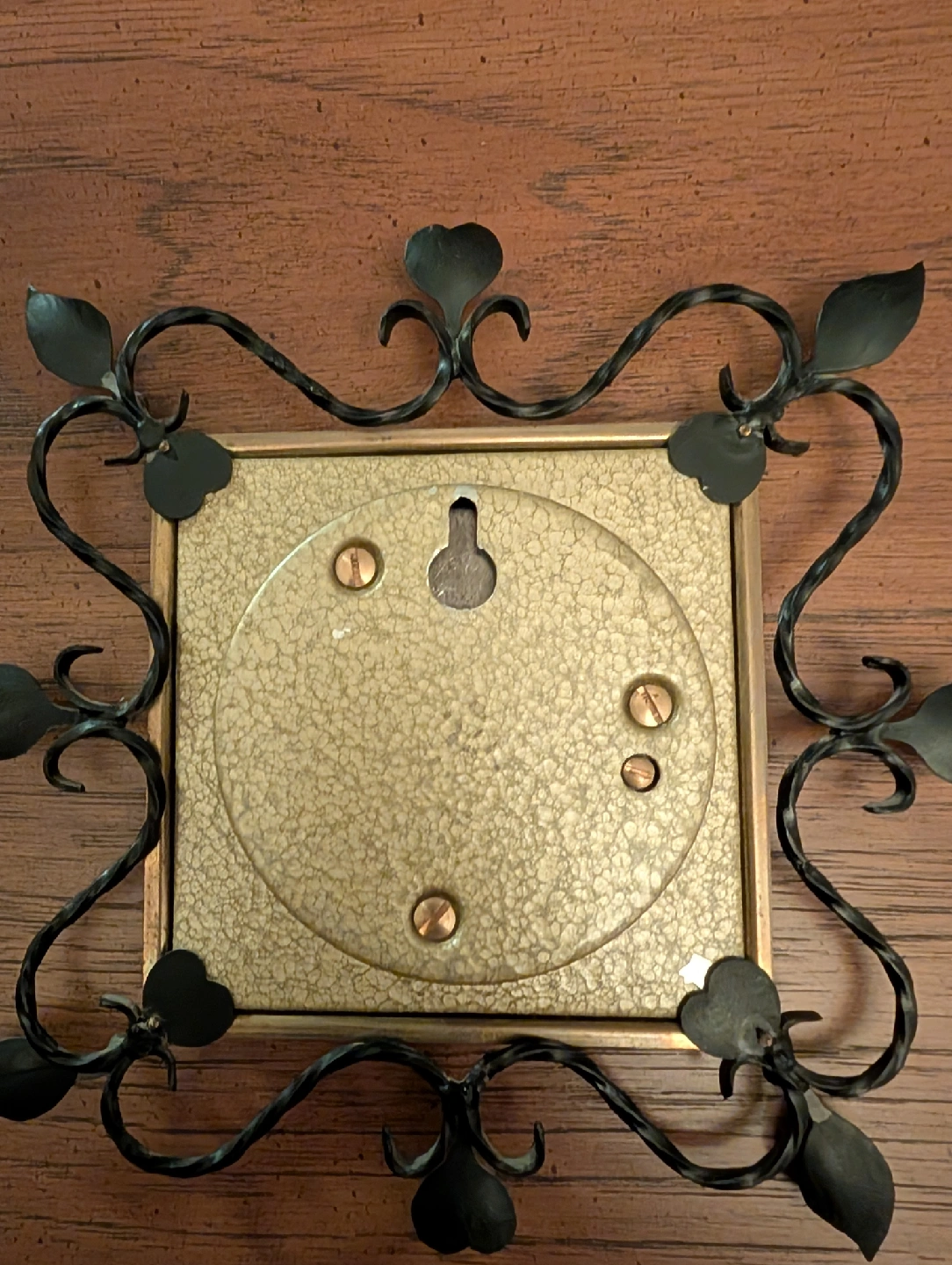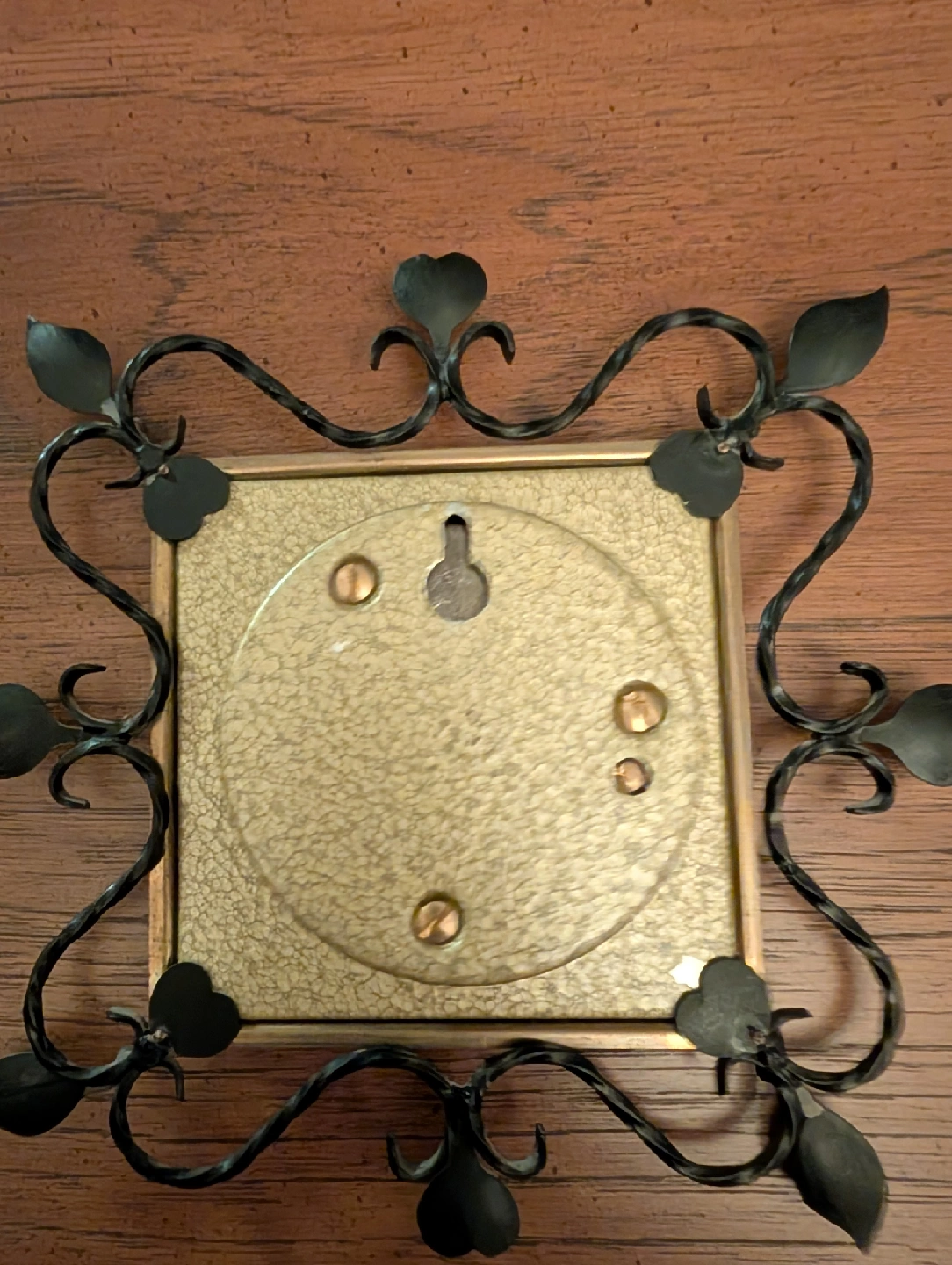 rare amazing condition old vintage made in Germany barometer wrough iron designs with gold accents and brass in great condition it's a scientific instrument used to measure the atmospheric pressure and forecast changing in weathere with its beautiful vintage touch can also be Hun on wall asking 170$ or best offer price negotiable