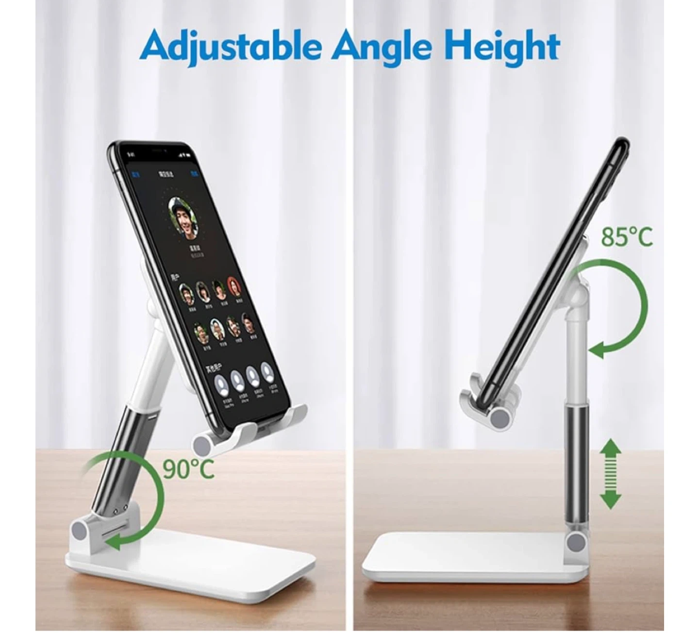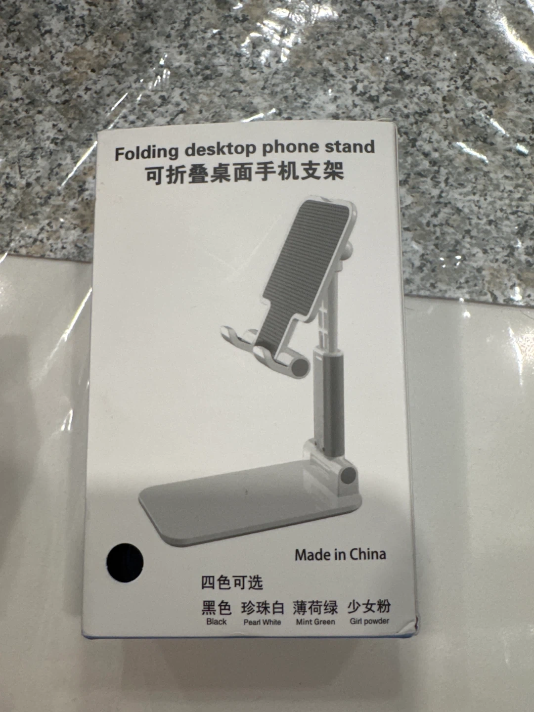205Selling a folding desktop phone stand in white. It's adjustable for both angle and height, making it super convenient. Perfect for hands-free use of your phone at home or in the office! Comes with the original box.