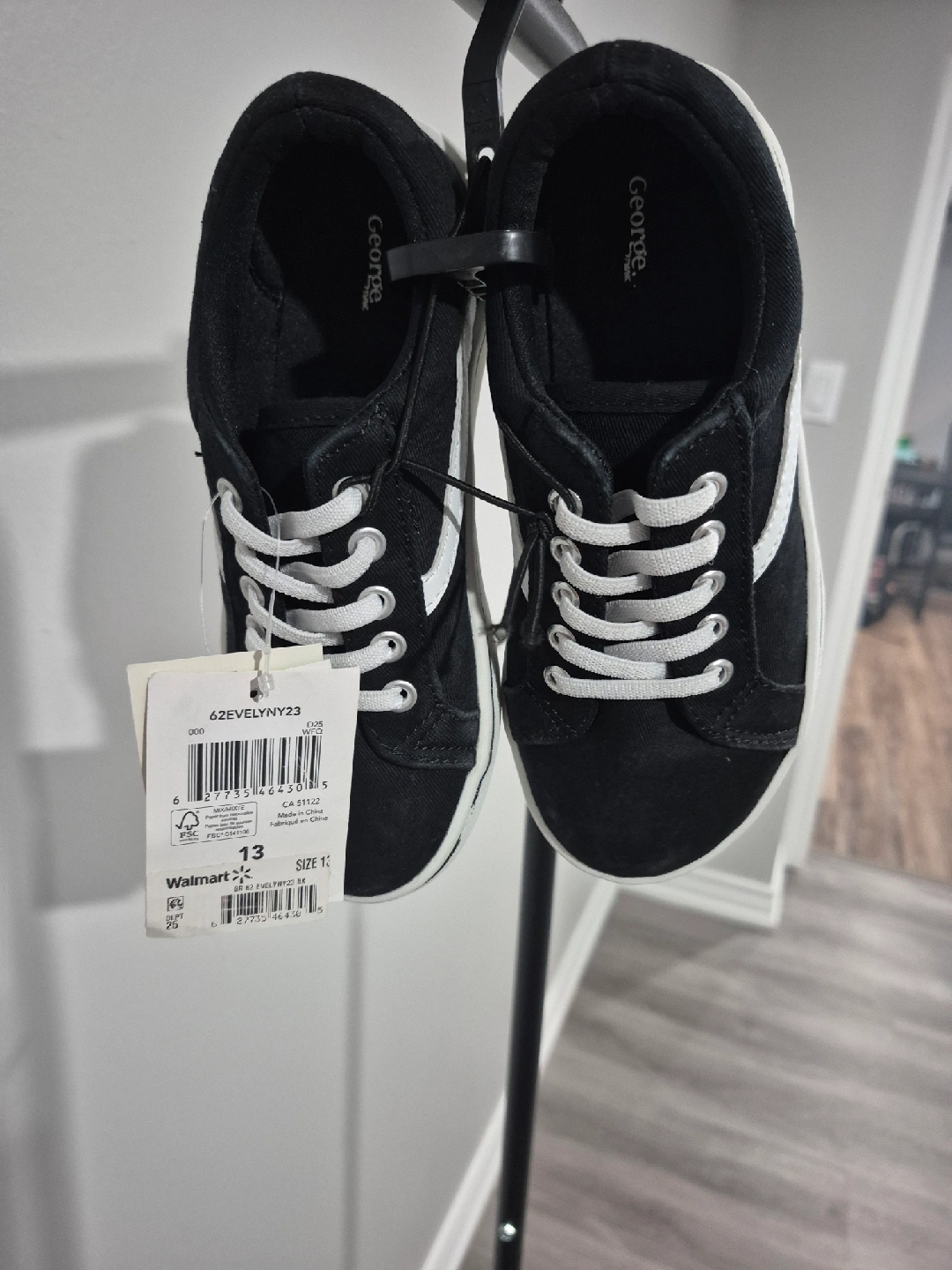 Selling a pair of George brand sneakers in size 13. They're black with white accents and in great condition. Perfect for your little one!