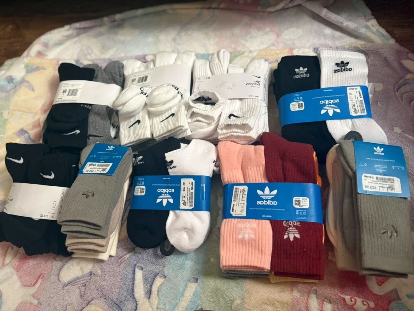I have a variety of Adidas and Nike socks for sale! They come in assorted colors and sizes. Perfect for everyday wear or athletic activities. Grab them while they're available!