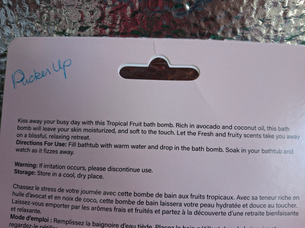 84Treat yourself to a relaxing bath with this X+Y=BEAUTY Pucker Up bath fizzy! This tropical fruit bath bomb is rich in avocado and coconut oil, leaving your skin moisturized and soft to the touch. Enjoy the fresh and fruity scents as it fizzes away in warm water
