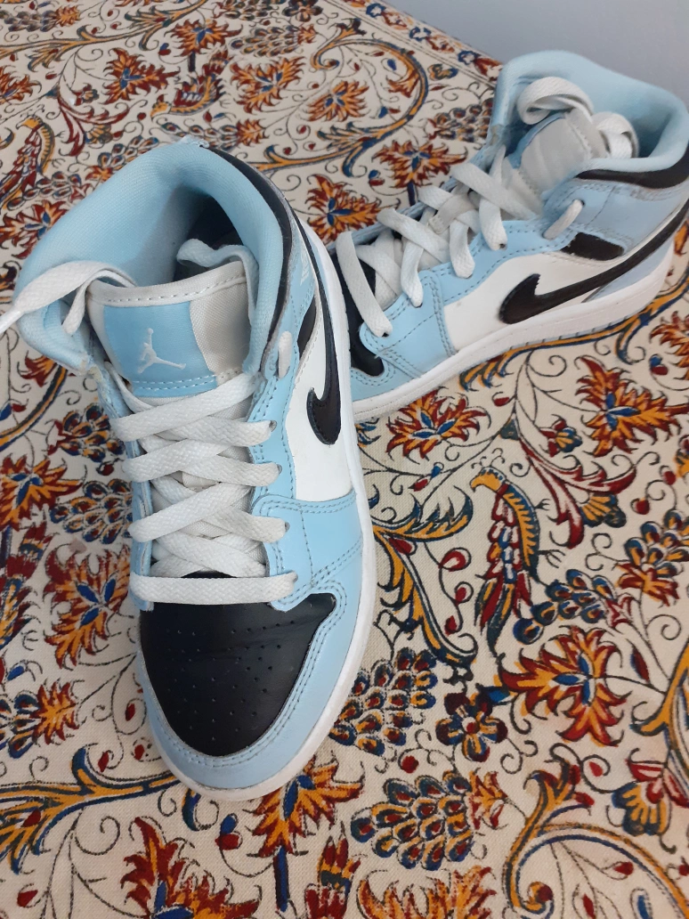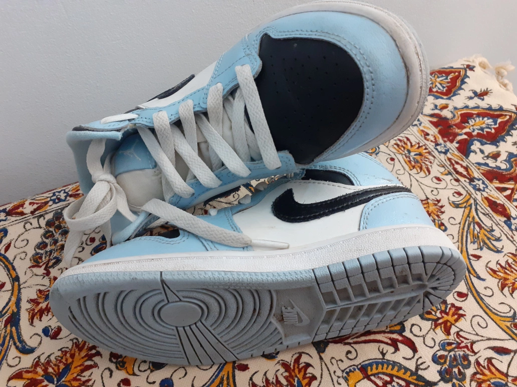 115Selling a pair of NIKE sneakers in a sky blue and black colourway! These are in kids size 12C and are perfect for your little one to run around in.