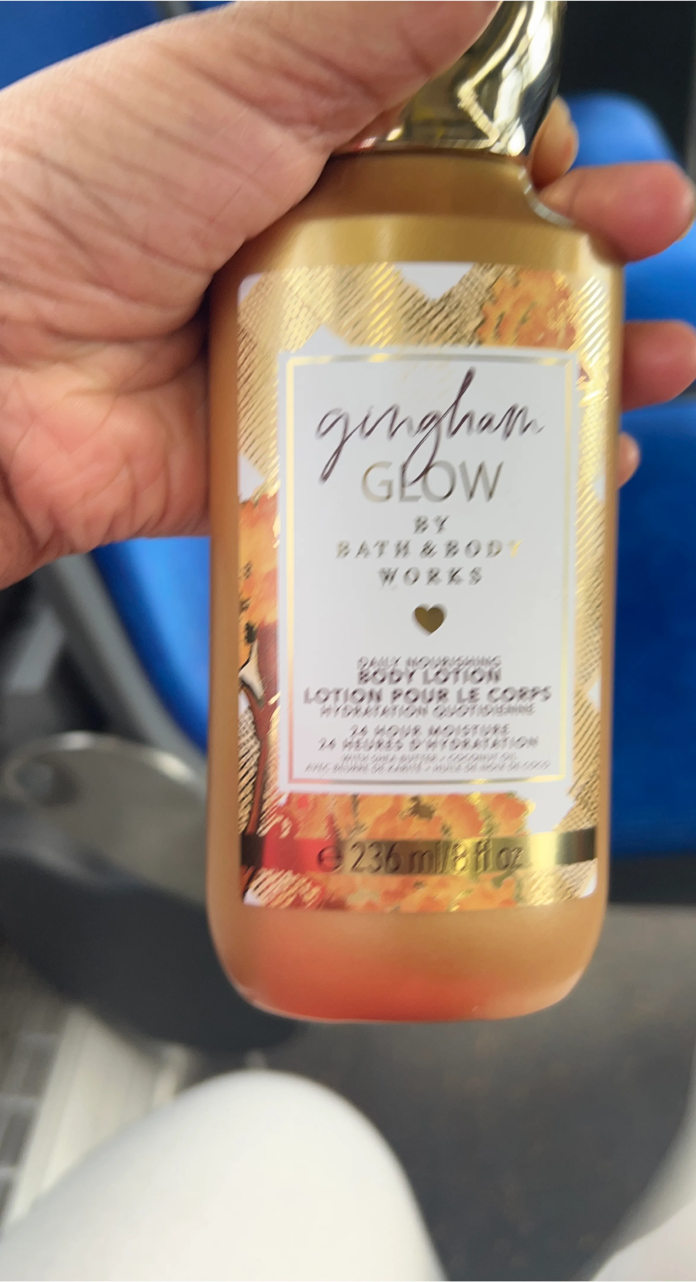 Selling a Bath & Body Works Gingham Glow daily nourishing body lotion. It's a lotion pour le corps with 24-hour moisture. Contains 236ml/8 fl oz