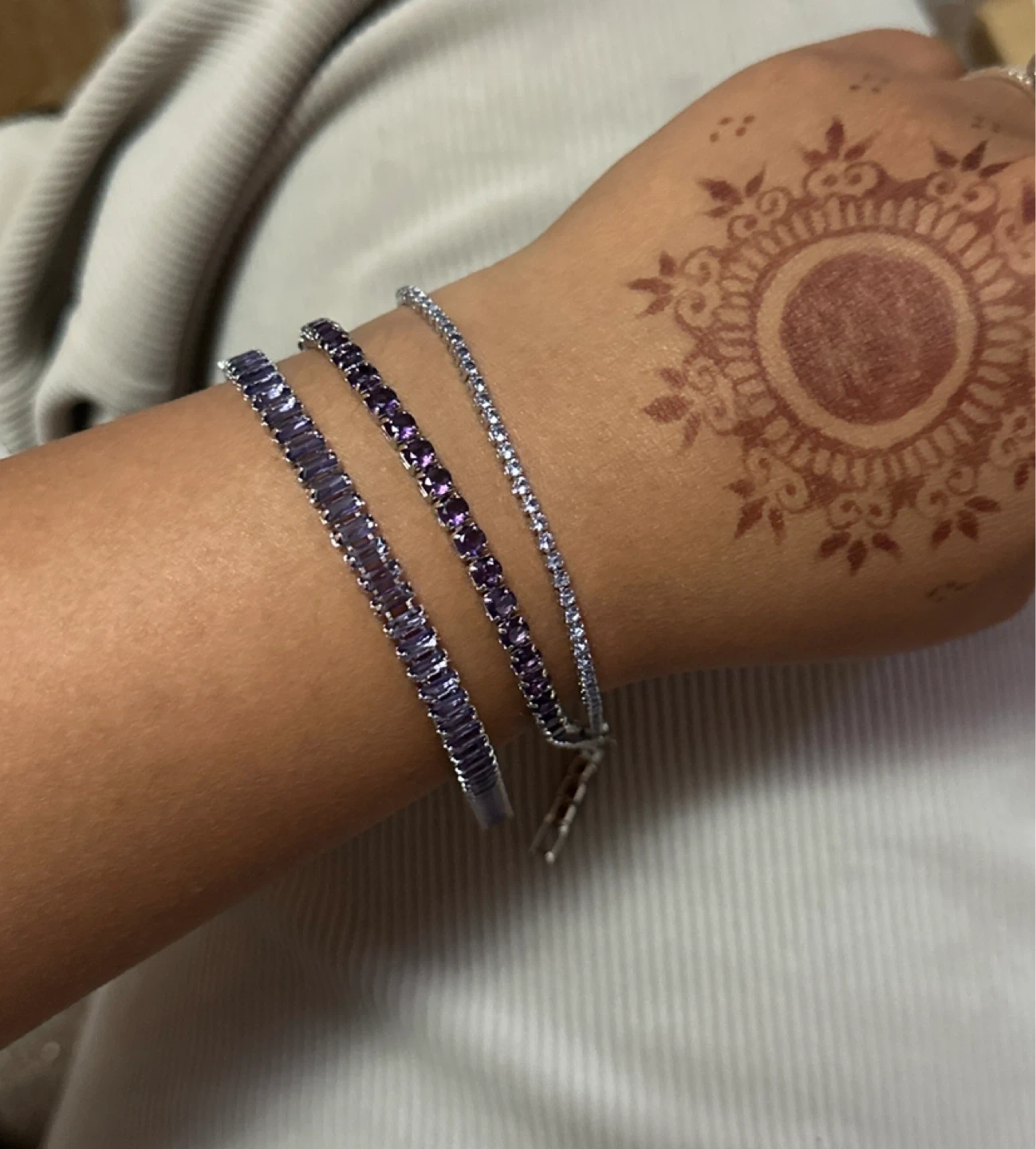 Set of 3 purple tennis bracelets—add a pop of color and sparkle! Perfect for stacking or wearing individually.