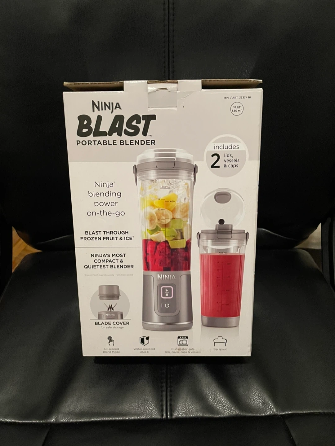 I'm selling a brand new Ninja Blast portable blender, still in its original box! This handy blender is perfect for making smoothies and frozen drinks on the go. It's easy to use and even easier to clean. It includes 1 lid, vessel, and 1 cap. Plus, it's USB-C rechargeable and comes with a USB-C cord. It's water-resistant and dishwasher safe (parts only, not motor & vessels) for easy cleanup