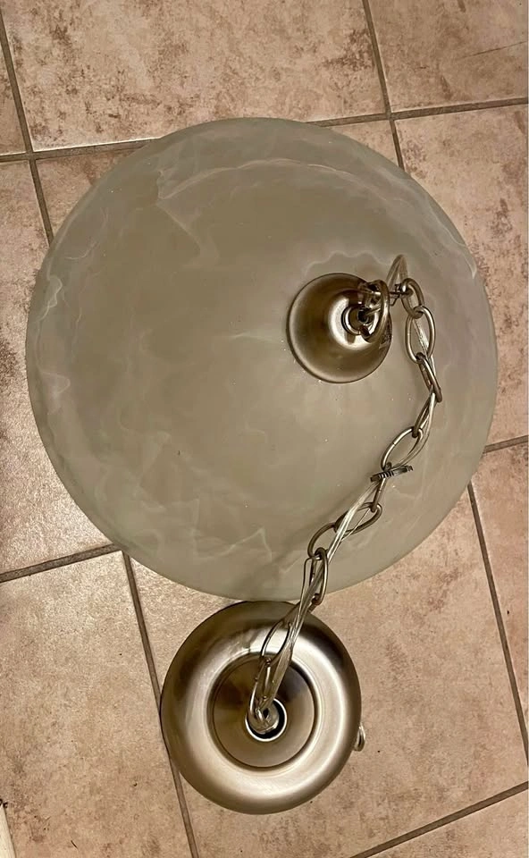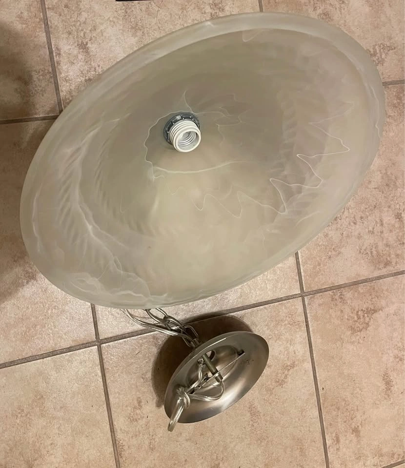 97Ceiling Lamp with Frosted Glass in very good condition for sale in Brampton near Fletchers Parkette. Ideal for porch or over the dining table