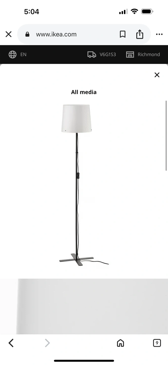 Selling an IKEA barlast floor lamp in great condition. It features a sleek design with a white shade and a black stand. Perfect for adding a touch of modern style to any room!