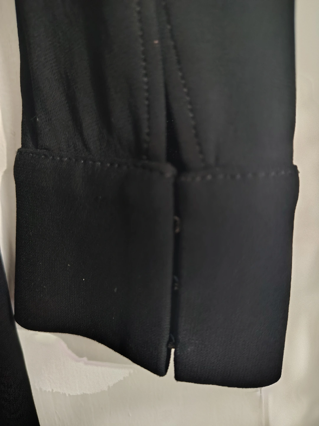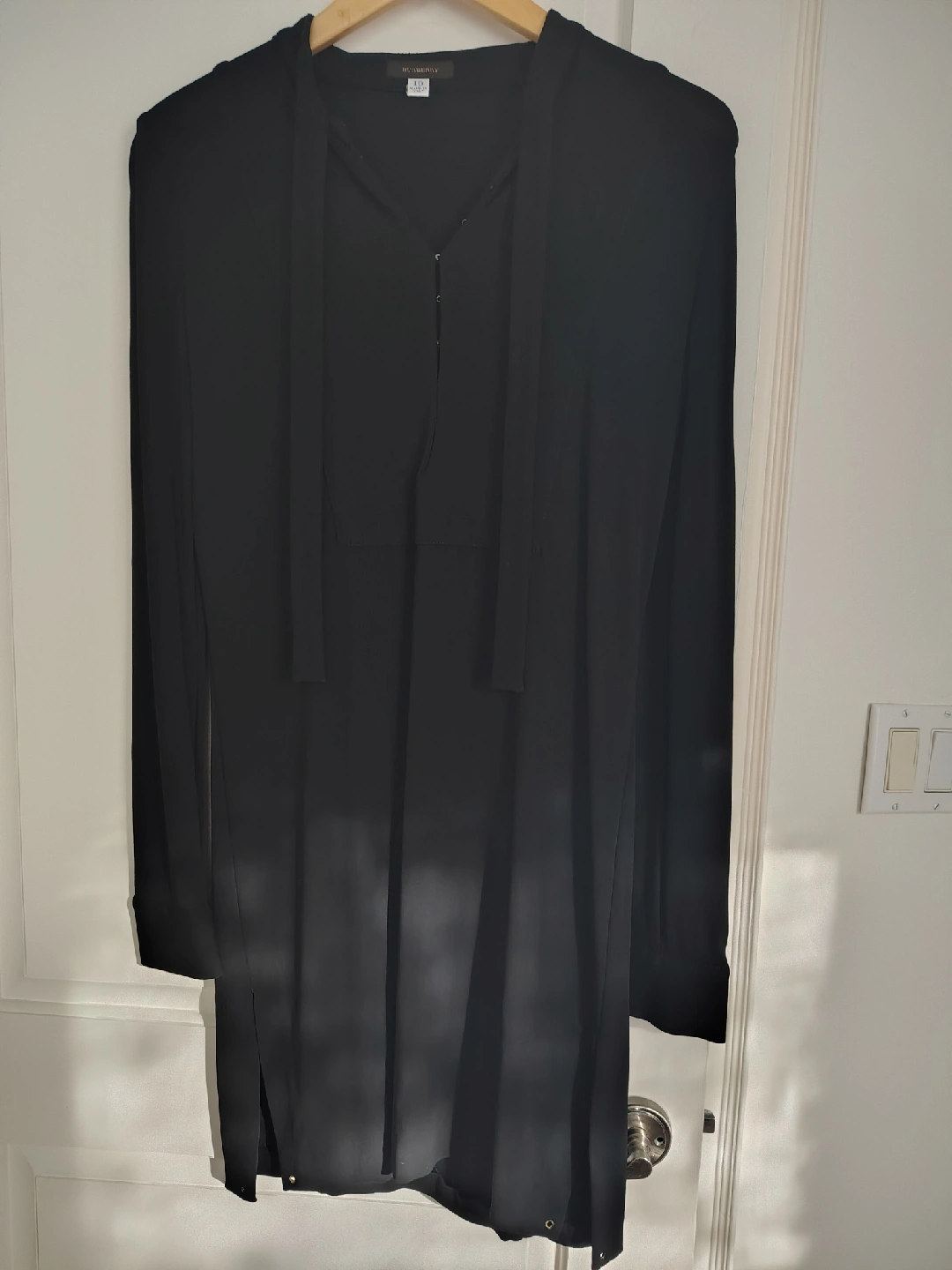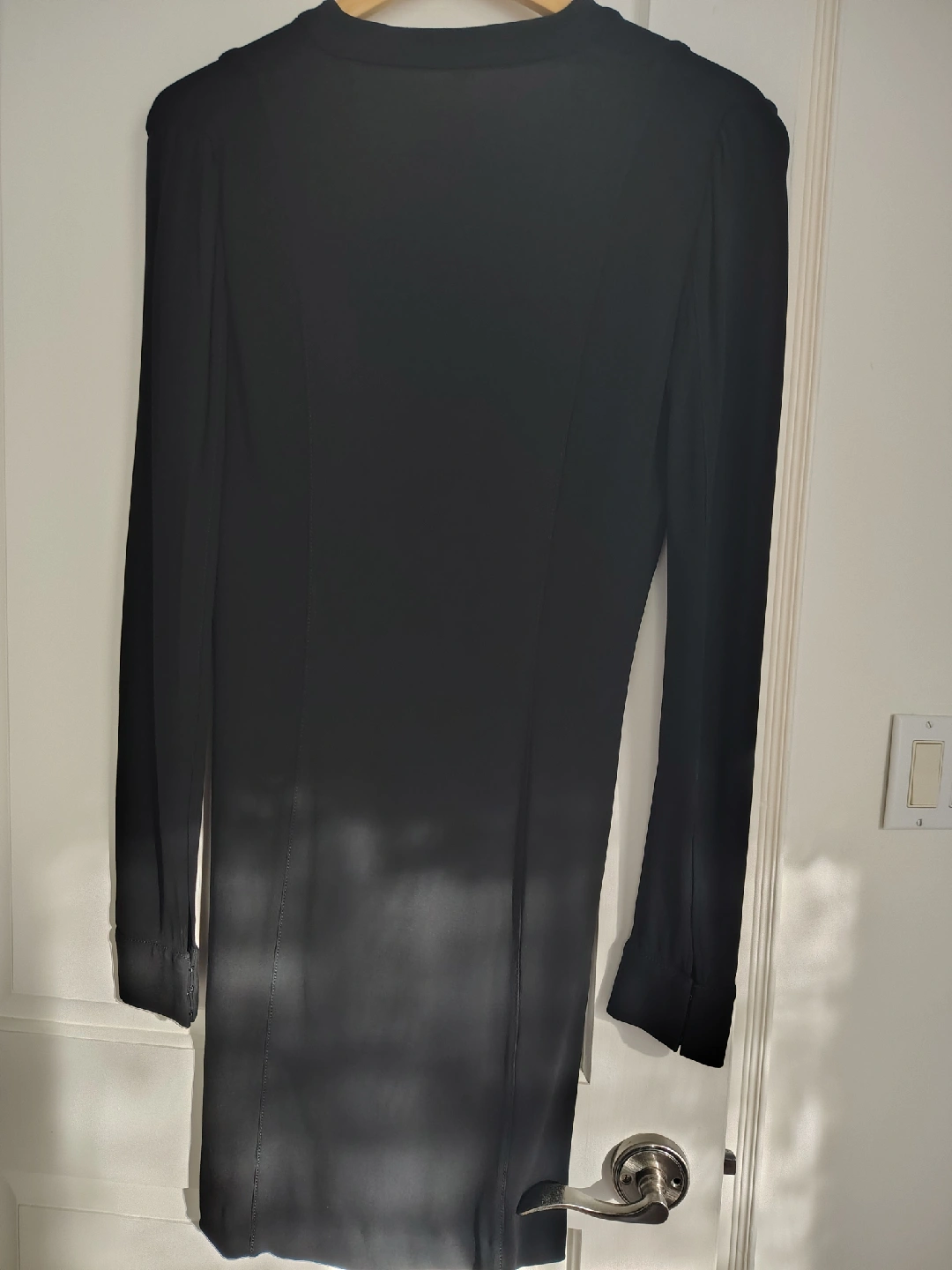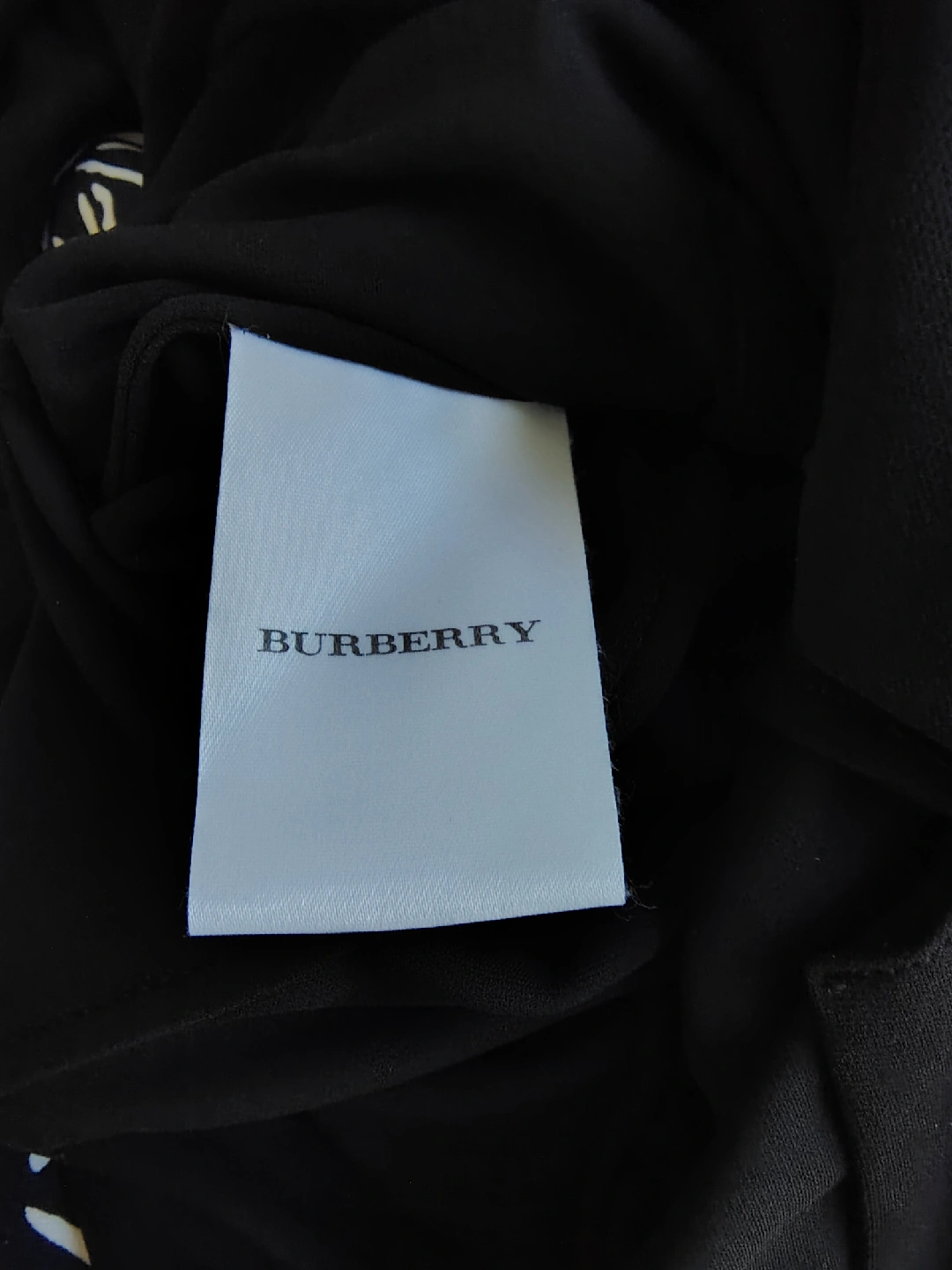 A stunning and timeless piece from Burberry β sleek, sophisticated, and uniquely detailed. The fabric is to die for β high-quality, rich, and with the perfect drape.