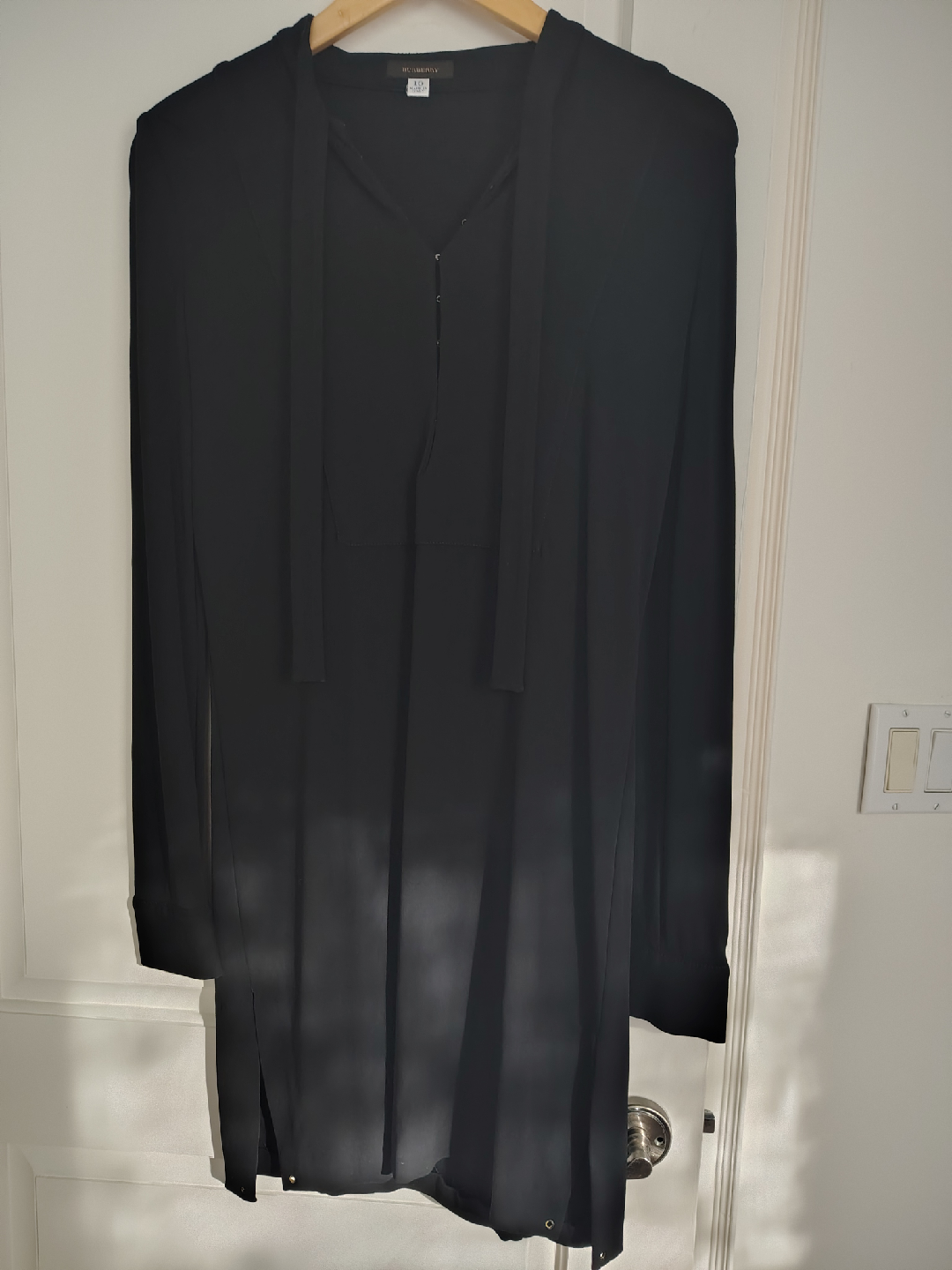 ✨ Vintage Burberry Black Dress (Size 10 Vintage Sizing) A stunning and timeless piece from Burberry β€” sleek, sophisticated, and uniquely detailed. The fabric is to die for β€” high-quality, rich, and with the perfect drape. Made in Italy. Features beautiful hook-and-eye detailing at the cuffs and up front and elegant side slits on the skirt that add just the right touch of allure. This dress fit me perfectly at 5'4" and 120 lbs β€” it hugs in all the right places while still feeling effortlessly comfortable. A true vintage gem that transitions beautifully from day to evening. From my curated collection to yours with love! πŸ–€