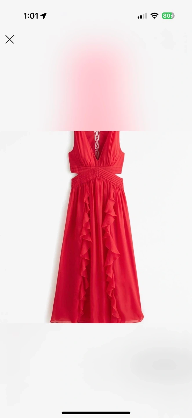 This is a beautiful red dress from H&M. It features a cutout design and ruffle detailing, perfect for a special occasion or a night out. It's in great condition and ready for a new home! Brand new; retails for $190