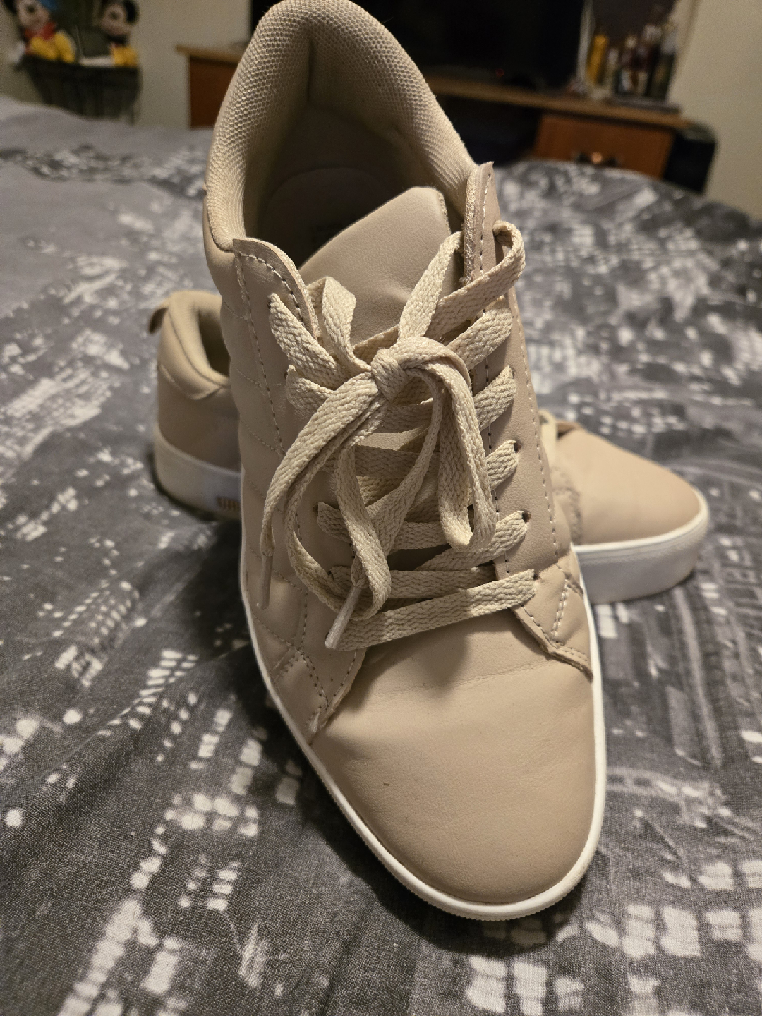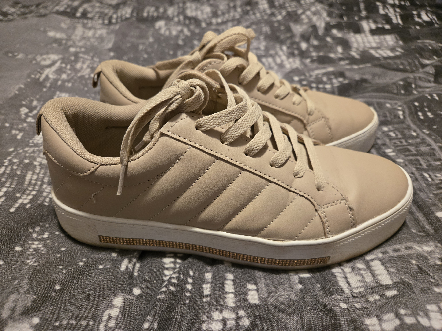 Selling a pair of beige sneakers in size 8. They're in great condition and ready for a new home! These sneakers are perfect for everyday wear and would look great with any casual outfit