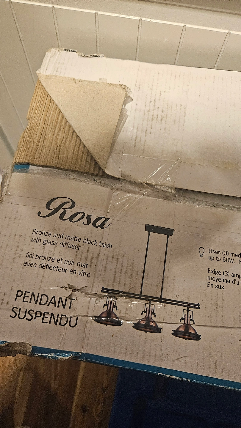 28Selling a Rosa pendant light with a bronze and matte black finish. It comes with a glass diffuser and uses three medium base bulbs up to 60W. The box is included.