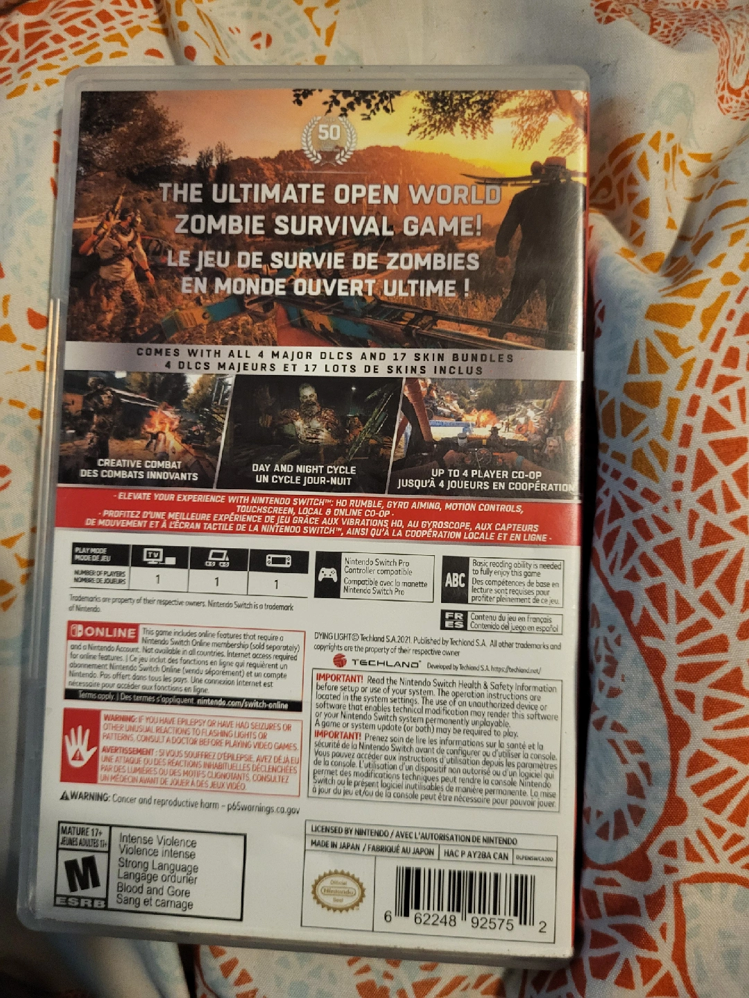 Selling Dying Light Platinum Edition for Nintendo Switch. The game is in great condition and ready for a new home! Enjoy the ultimate open-world zombie survival game with all major DLCs and skin bundles included