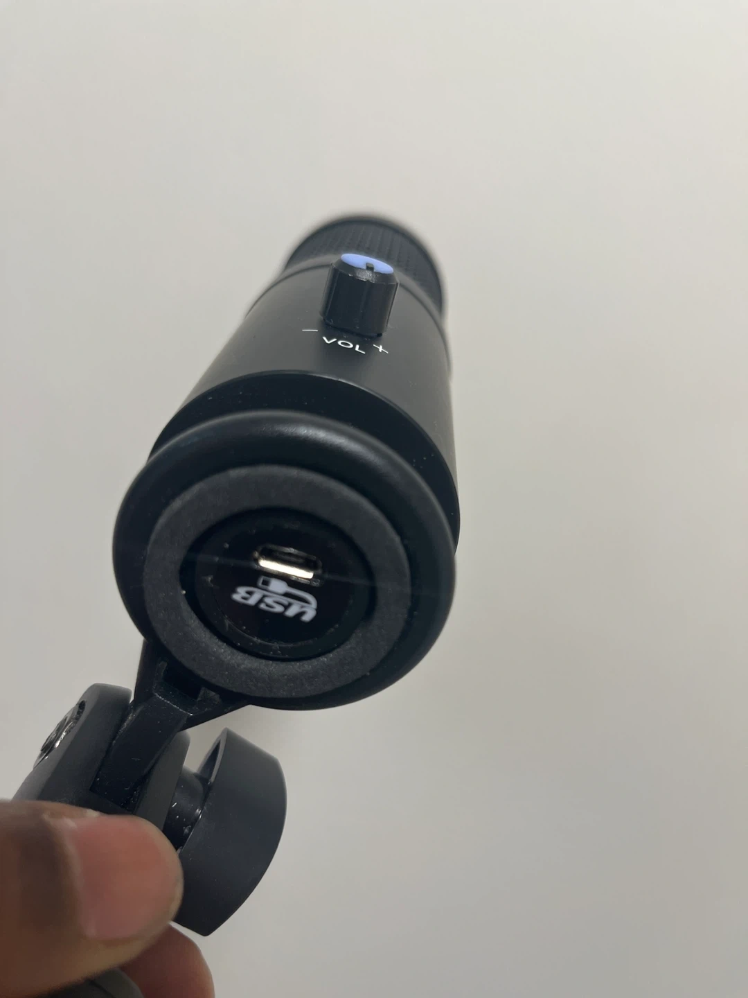 81Selling a black USB microphone in great condition! It features a headphone jack for monitoring and a volume control knob for easy adjustments. Perfect for podcasting, streaming, or recording music at home