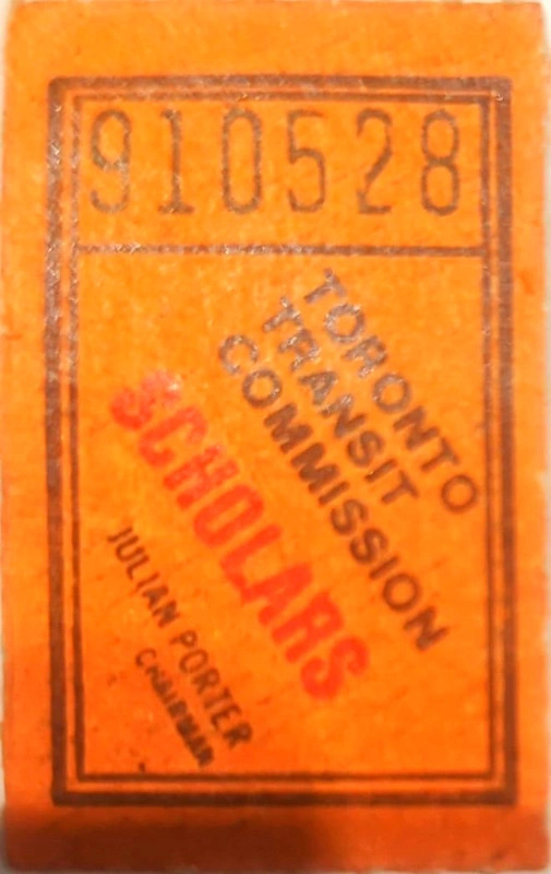 Vintage TTC Toronto Transit Commission Scholars Ticket Orange paper ticket. Number 910528. Toronto Transit Commission. Scholars. Julian Porter, Chairman.