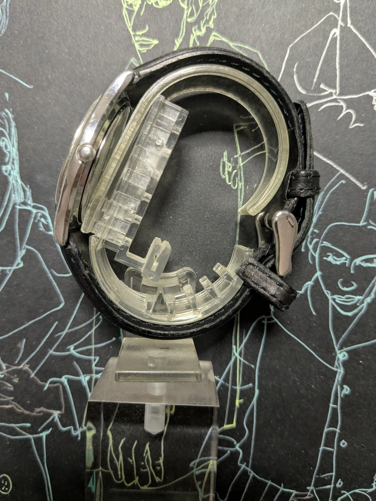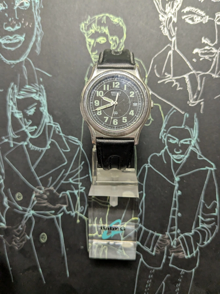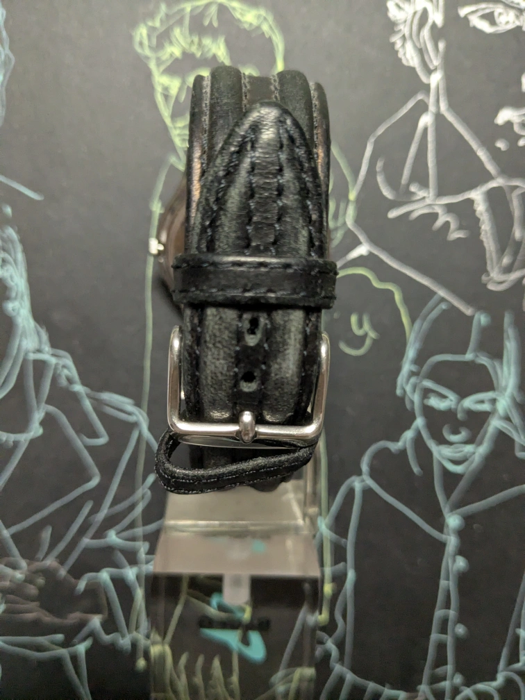 Seiko watch with a classic black leather band.