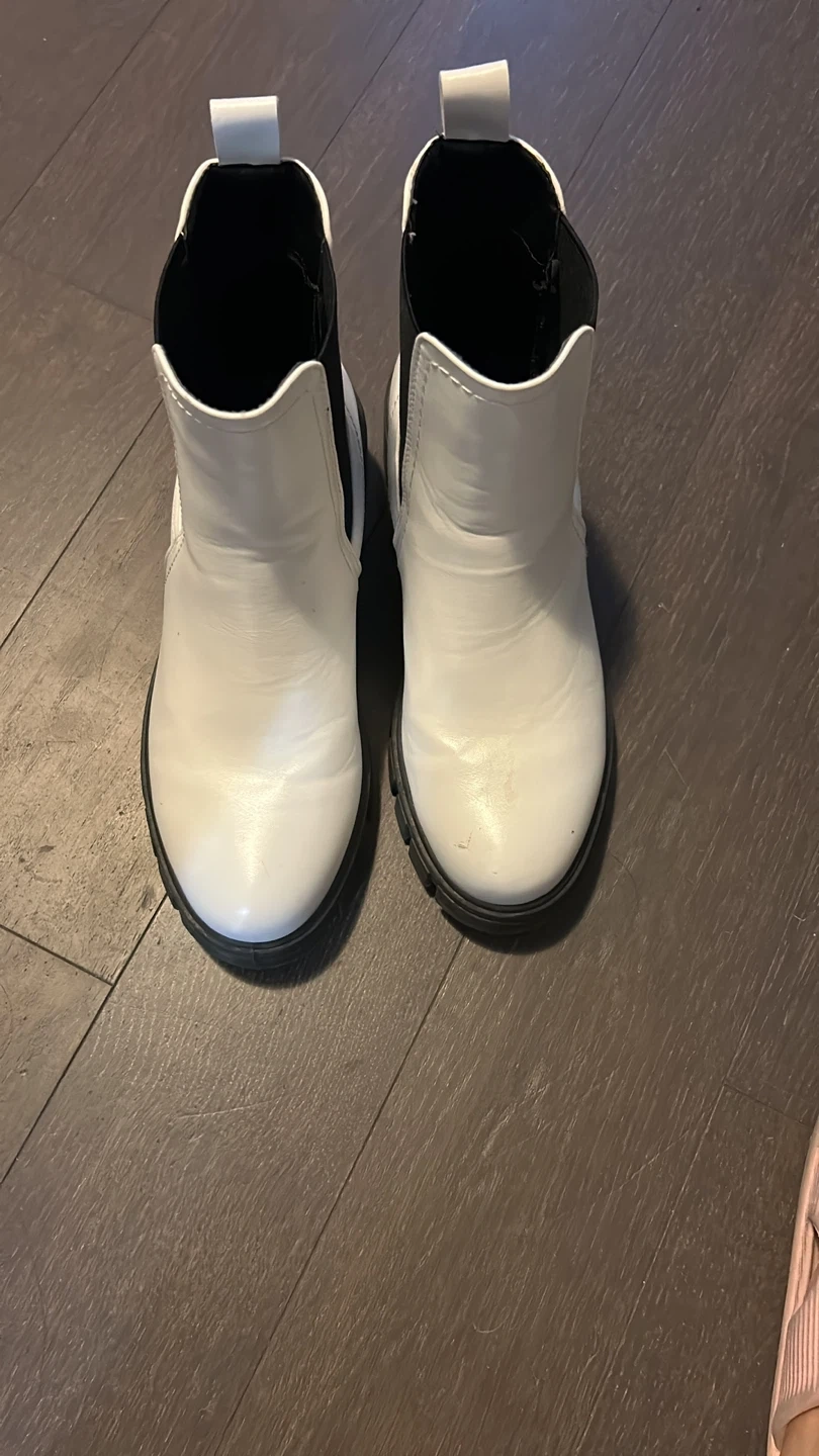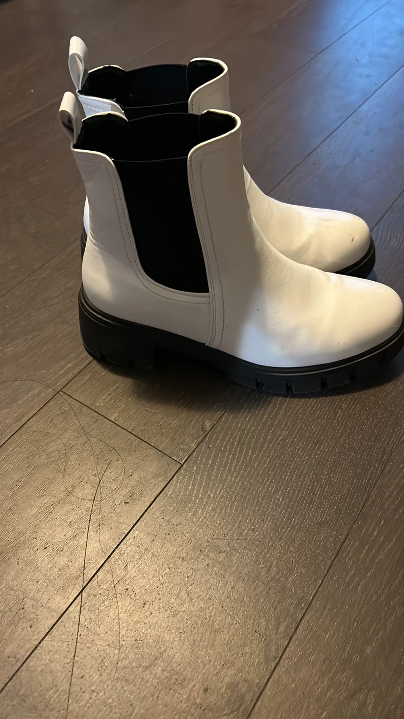 These white Chelsea boots are in great condition and ready for a new home! They're a stylish and versatile addition to any wardrobe. Perfect for dressing up or down, they're sure to become a go-to favourite Pick up near distillery District