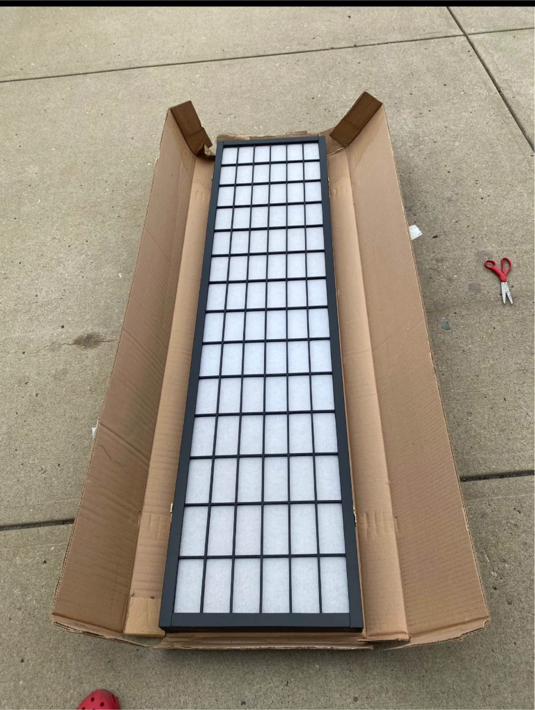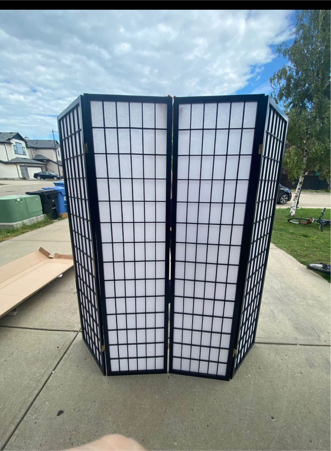 Selling a folding room divider! It has a black frame and a nice design. Great for adding some privacy or dividing up a space. It comes with the original box