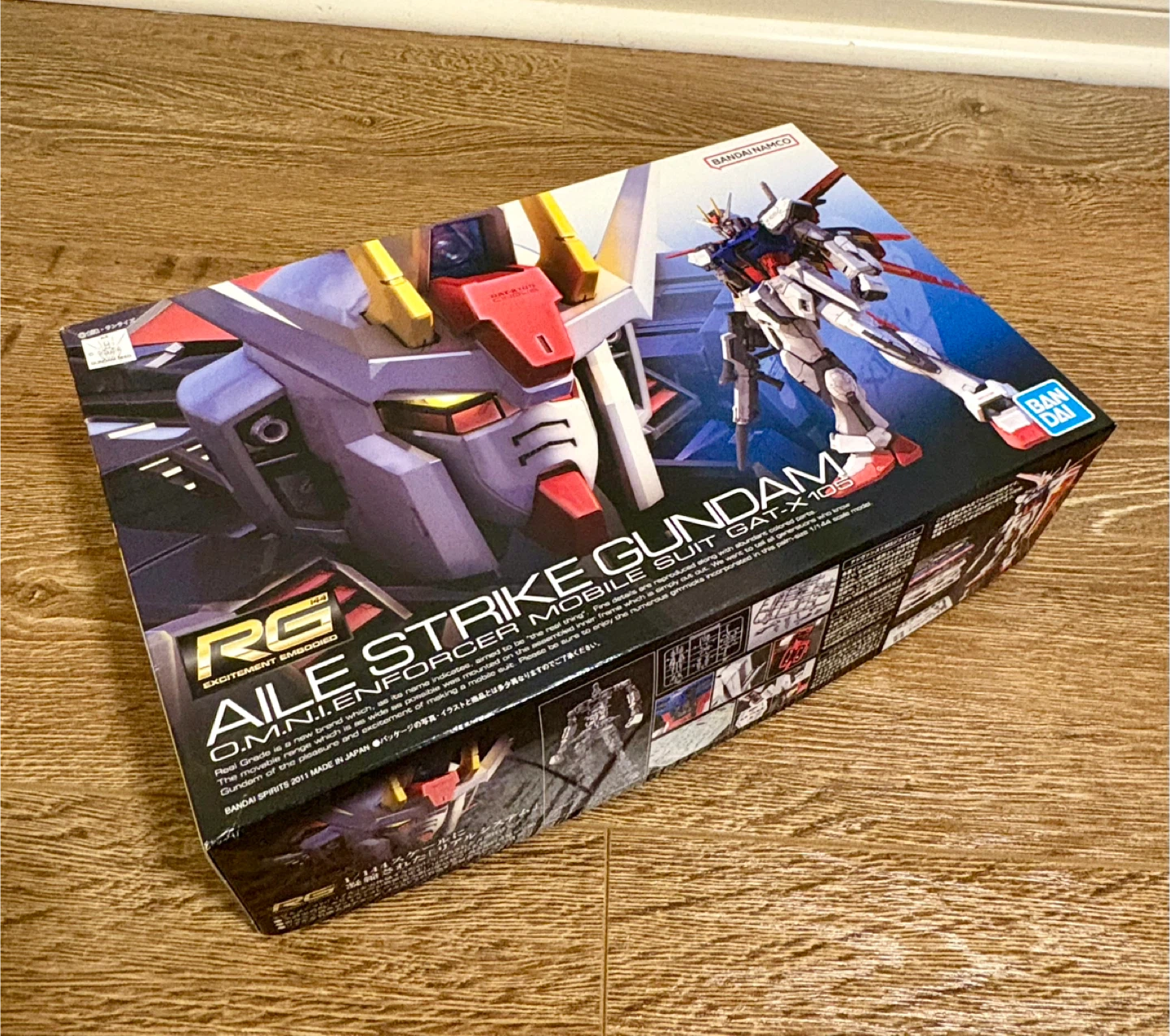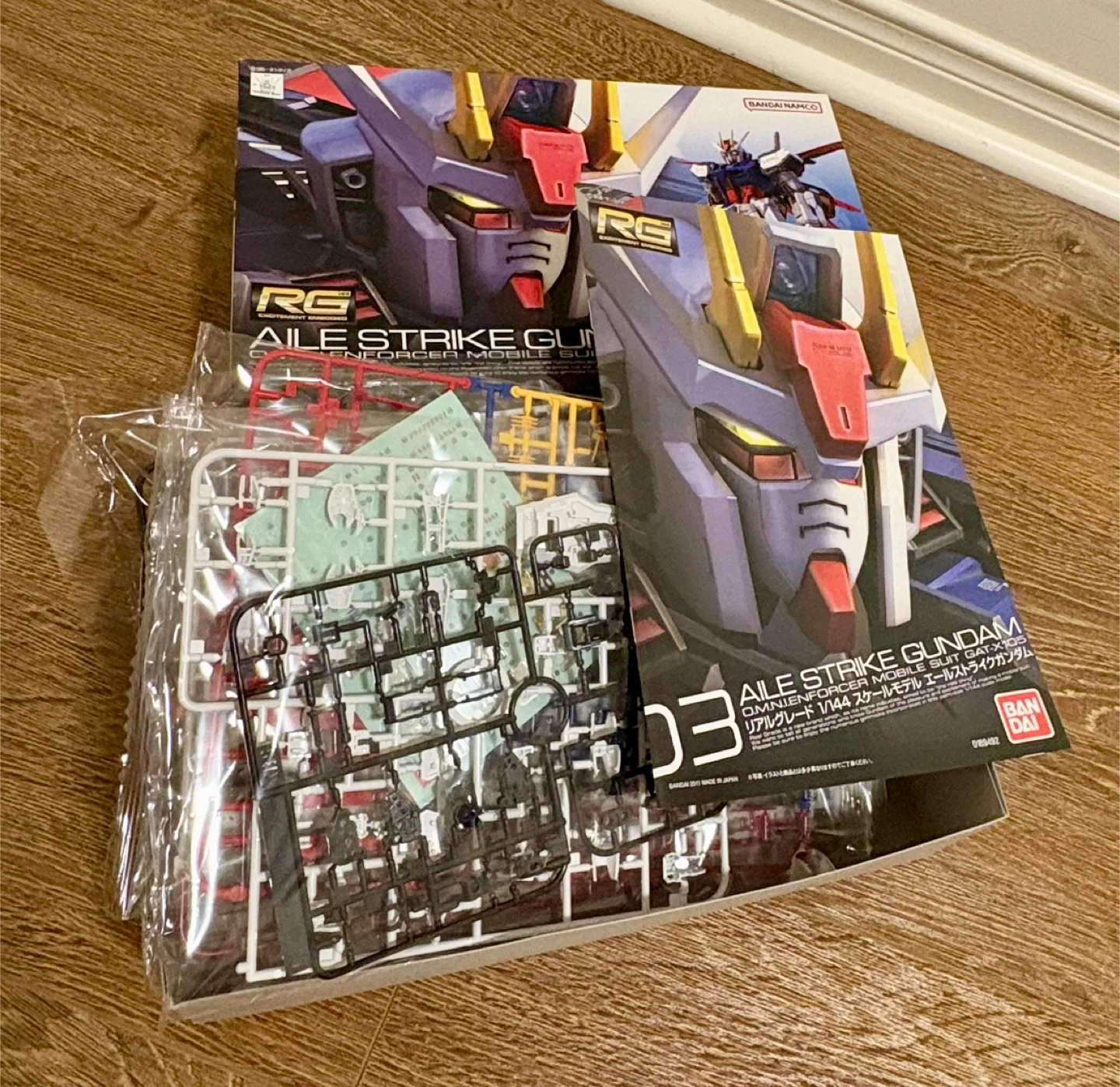 Selling a RG Aile Strike Gundam model kit by Bandai! It's a O.M.N.I. Enforcer Mobile Suit GAT-X 105. The box is included and all components are inside. Ready for assembly!