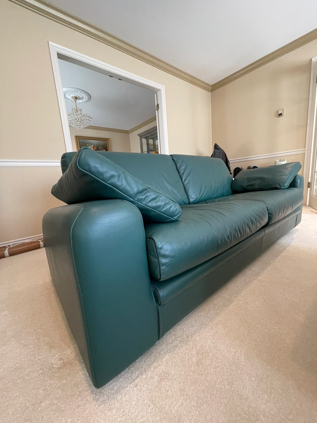 We’re selling a 3 + 2 seats leather sofa, made in Italy with high quality leather, barely used, like new