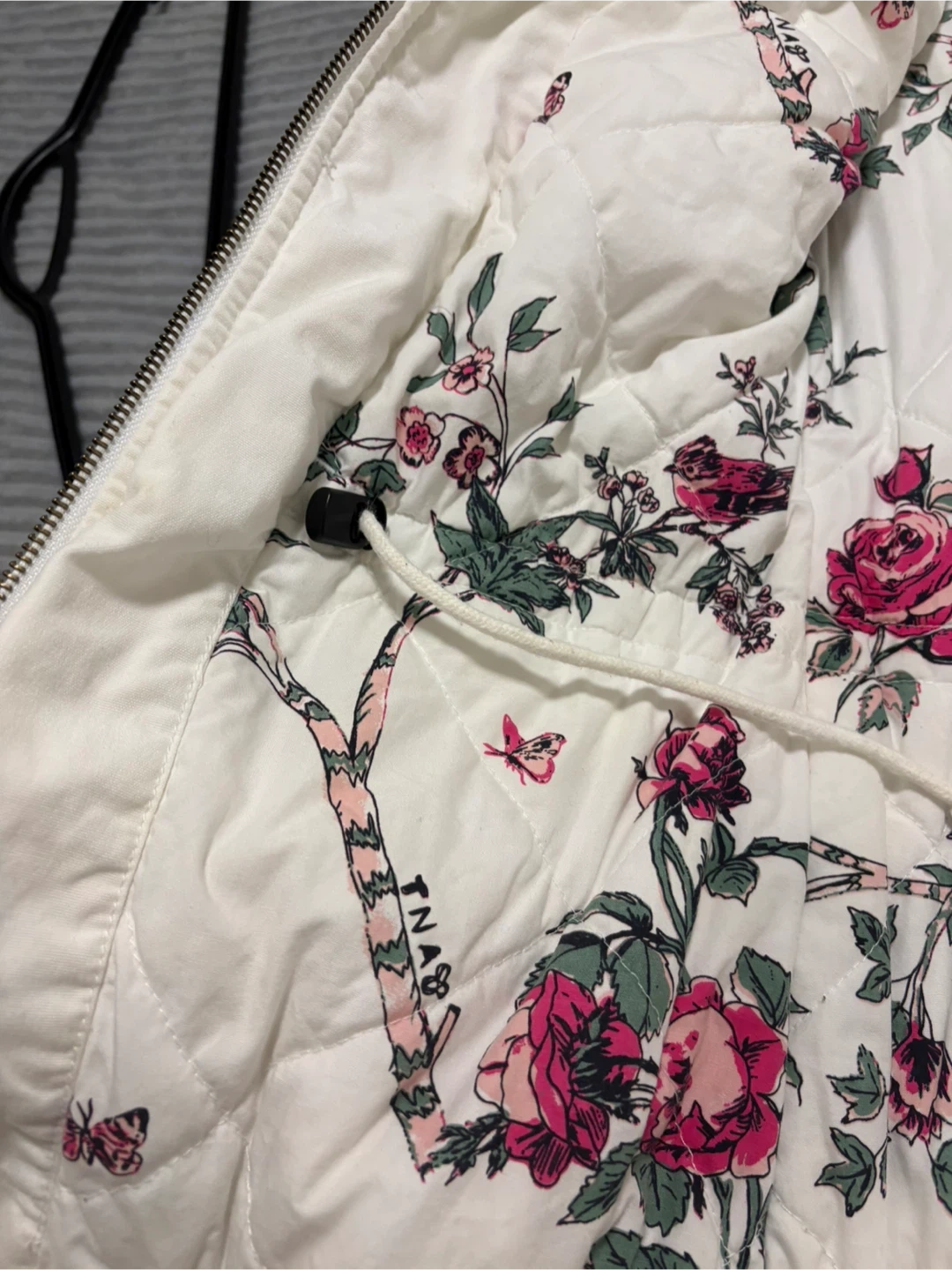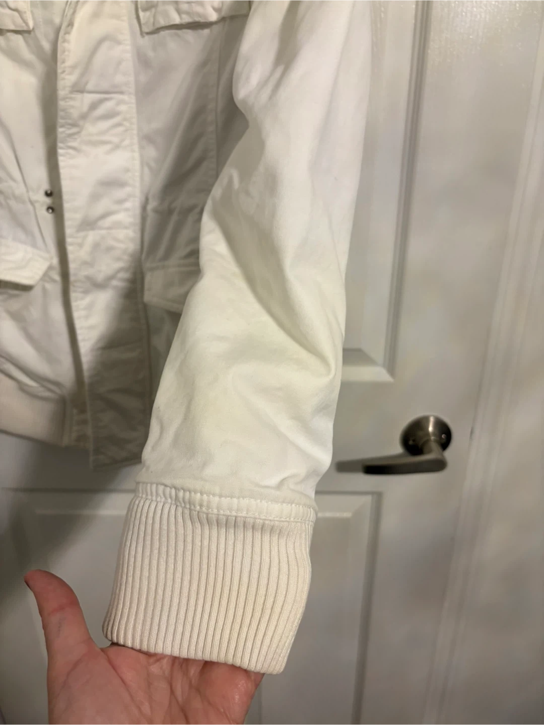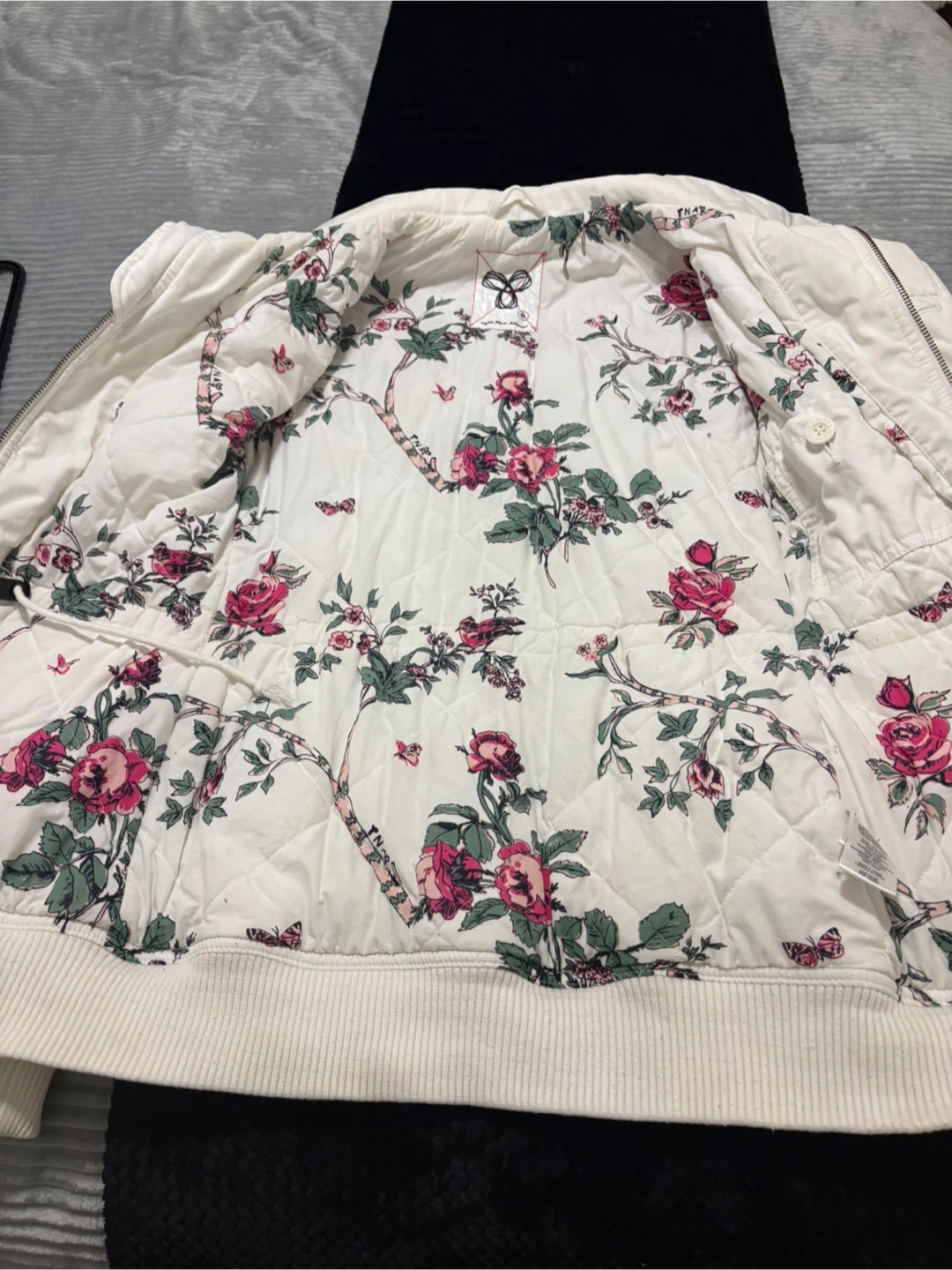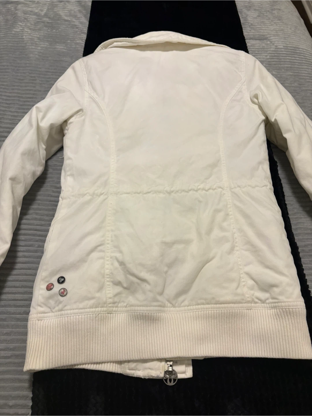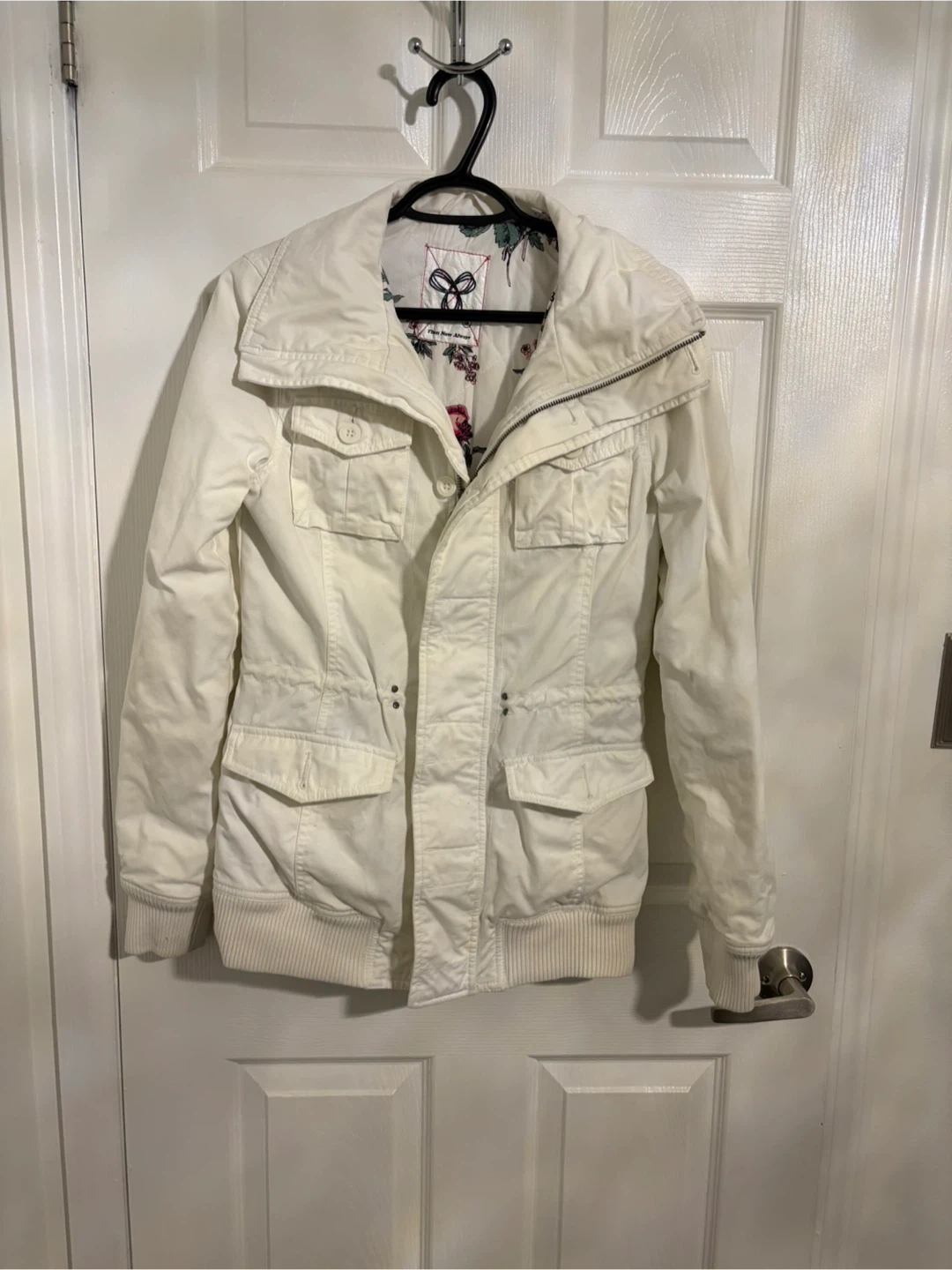 Selling a TNA Now Always jacket in white. It has a zipper and button closure, and lots of pockets!