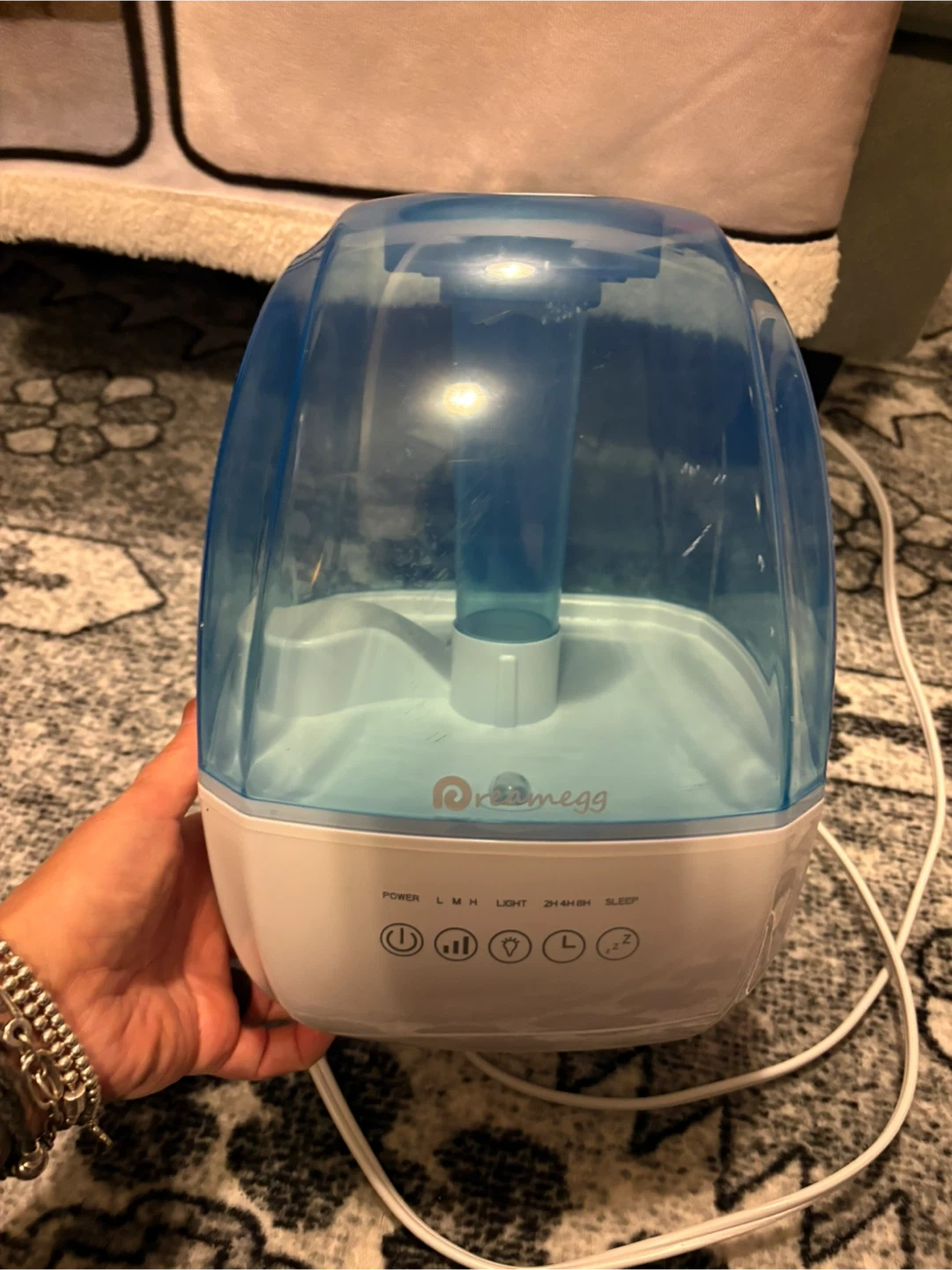 Selling a Dreamegg humidifier, perfect for a bedroom, baby's room, or any large room! It features cool mist, an auto-shut off timer, sleep mode, a night light, and quiet humidifying It is BPA free