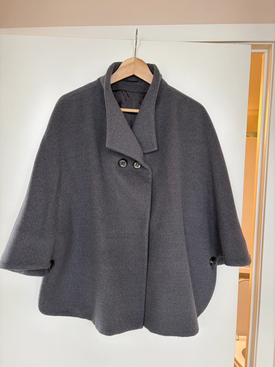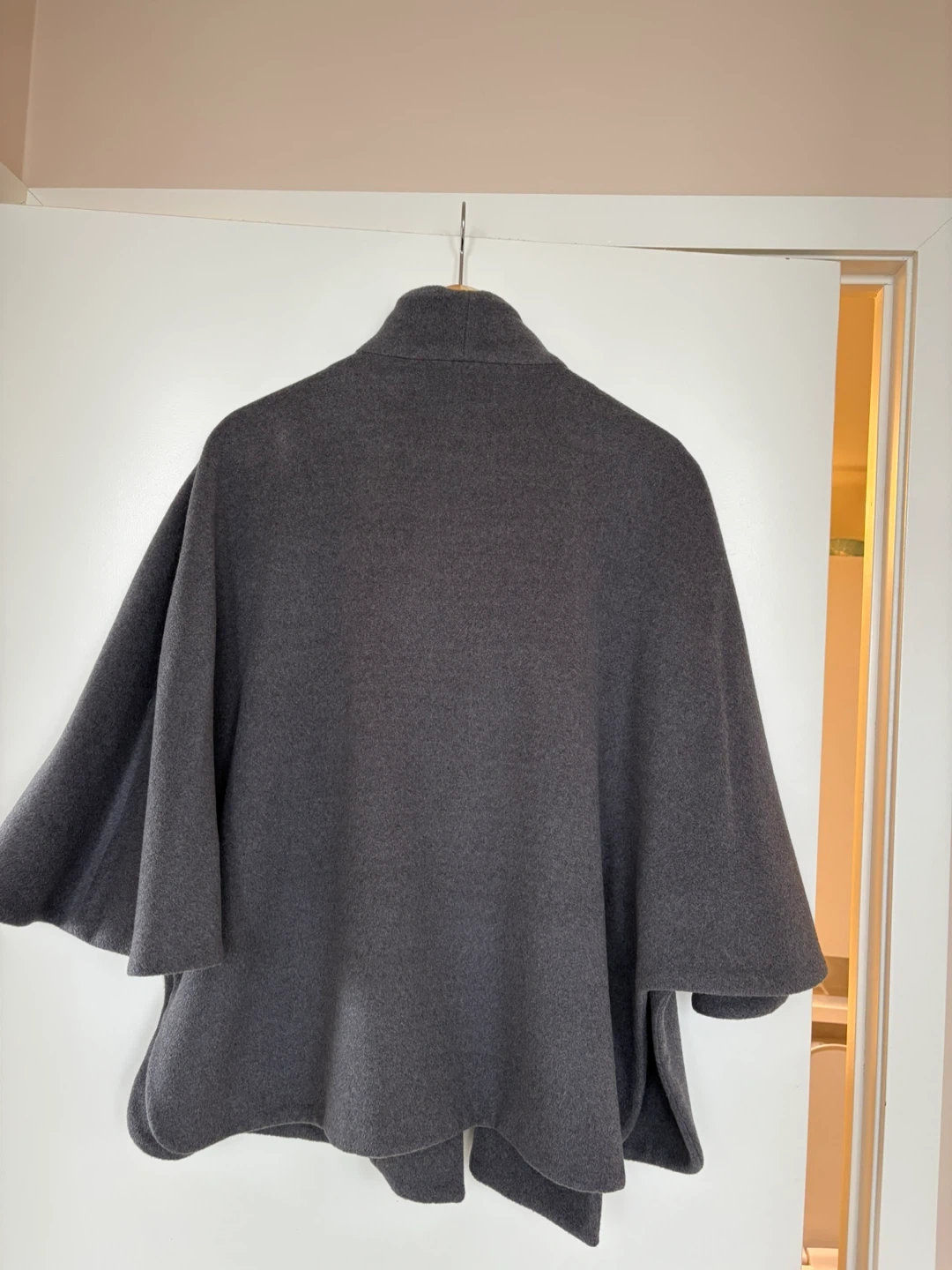 Selling a stylish grey cape! It's a wool blend and a one-size-fits-all kind of deal. Perfect for layering during the cooler months or adding a touch of elegance to any outfit. It’s in great condition and ready for a new home!