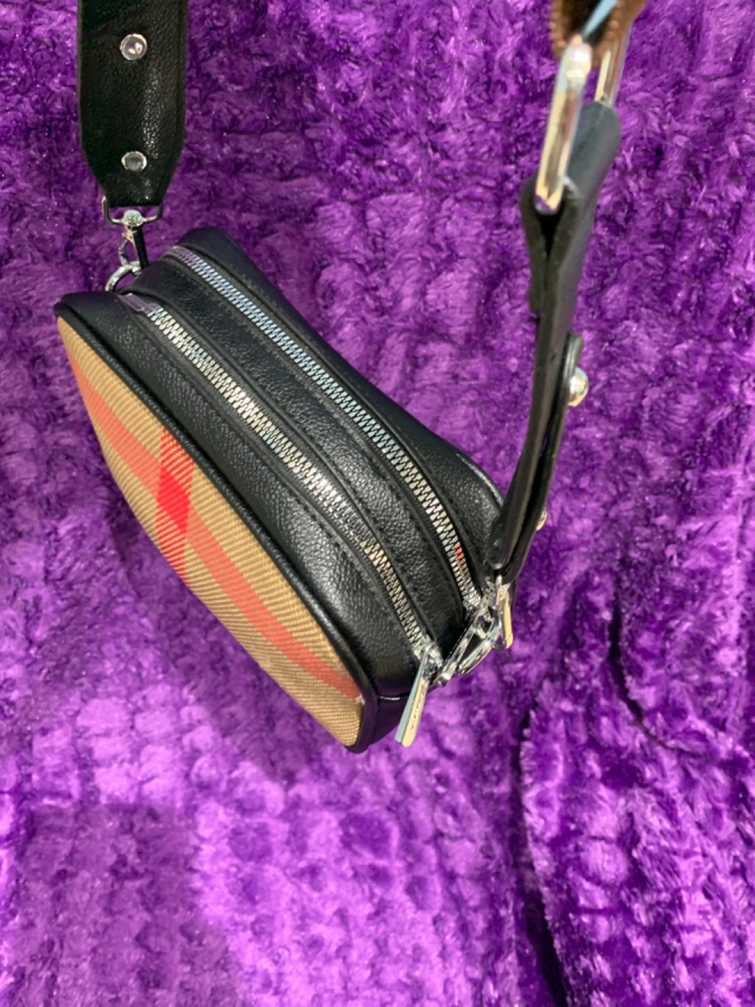 Stylish crossbody bag with a unique pattern and black leather accents. Perfect for everyday use and keeping your essentials close!