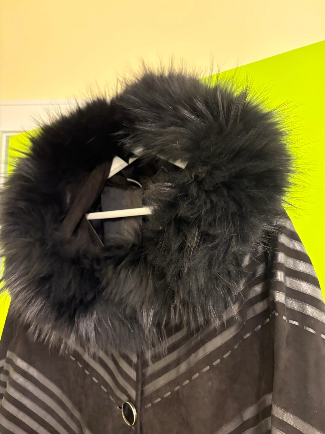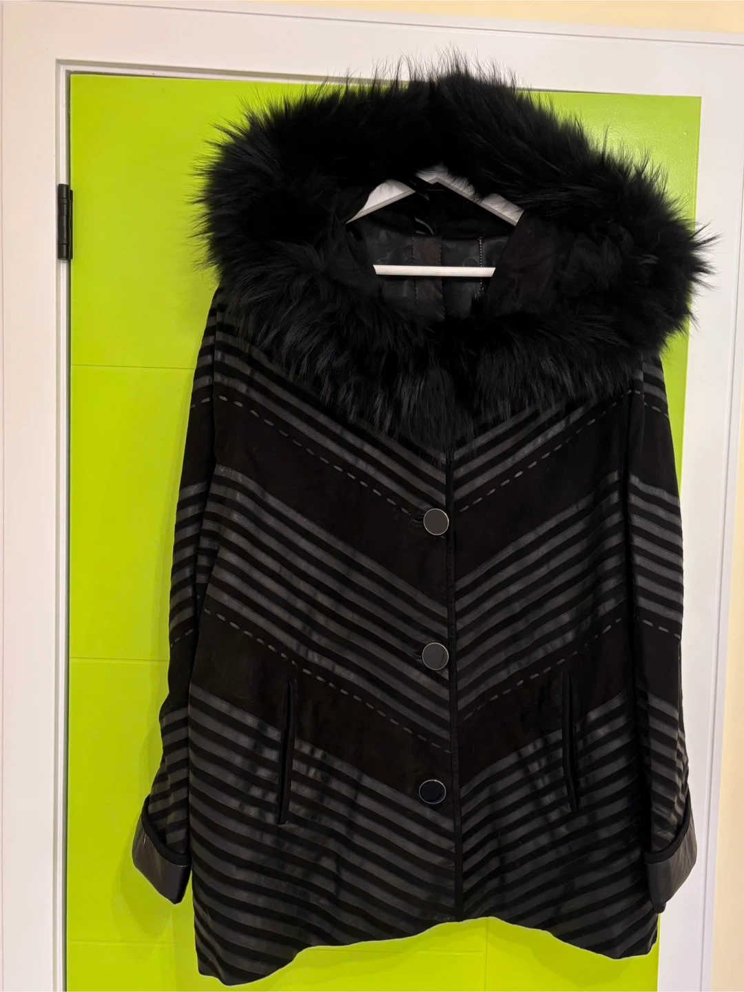 Selling a stylish black coat with fur. Perfect for keeping warm and looking fashionable during the colder months!