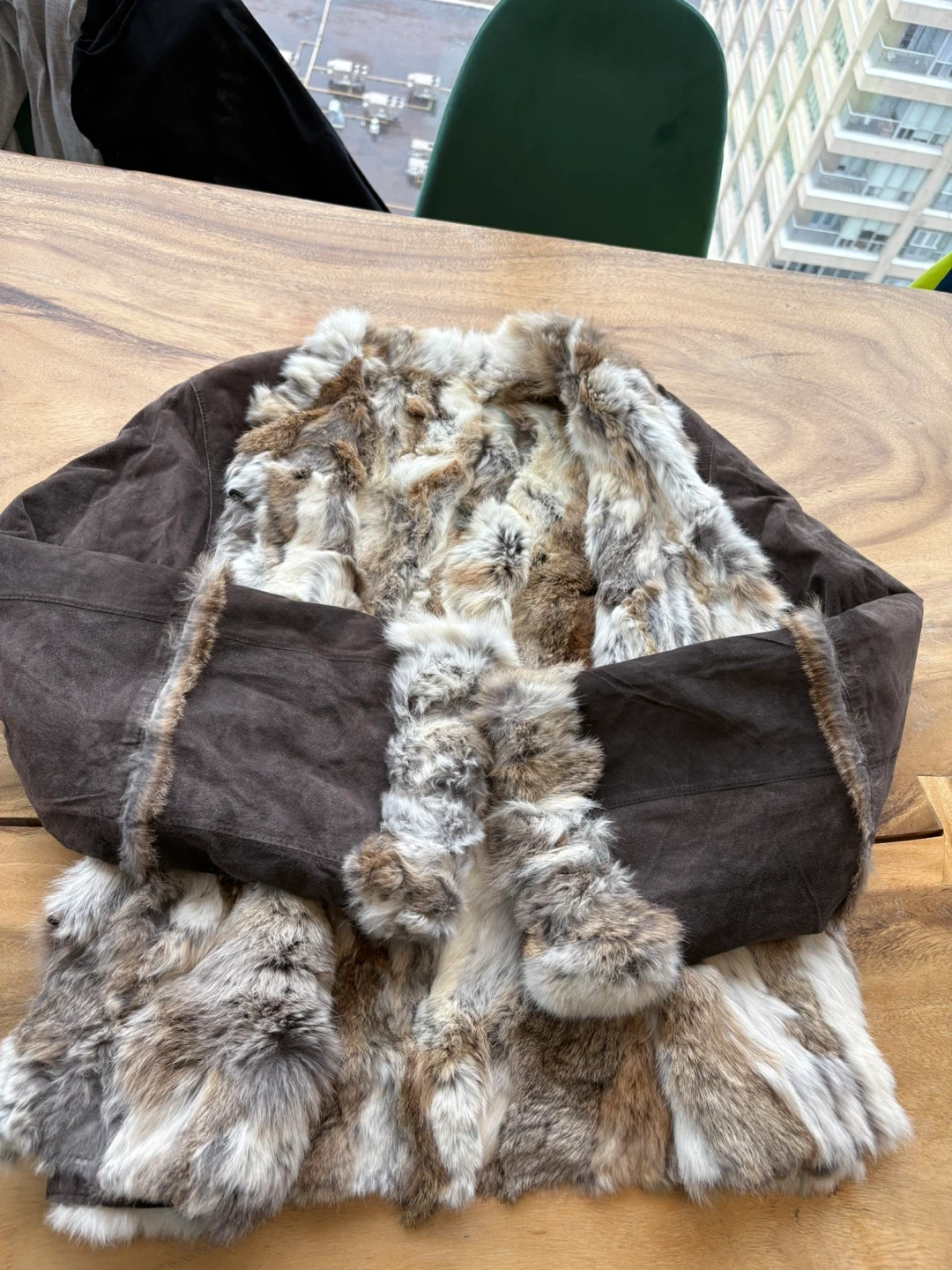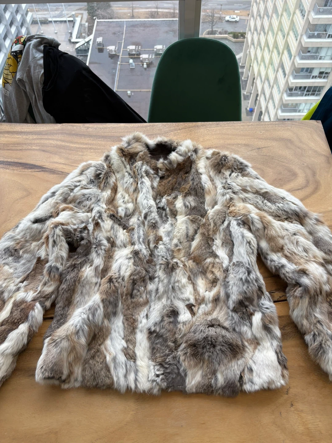 Selling a fur jacket in brown. It's in great condition and ready for a new home! Perfect for staying warm and stylish during the colder months.