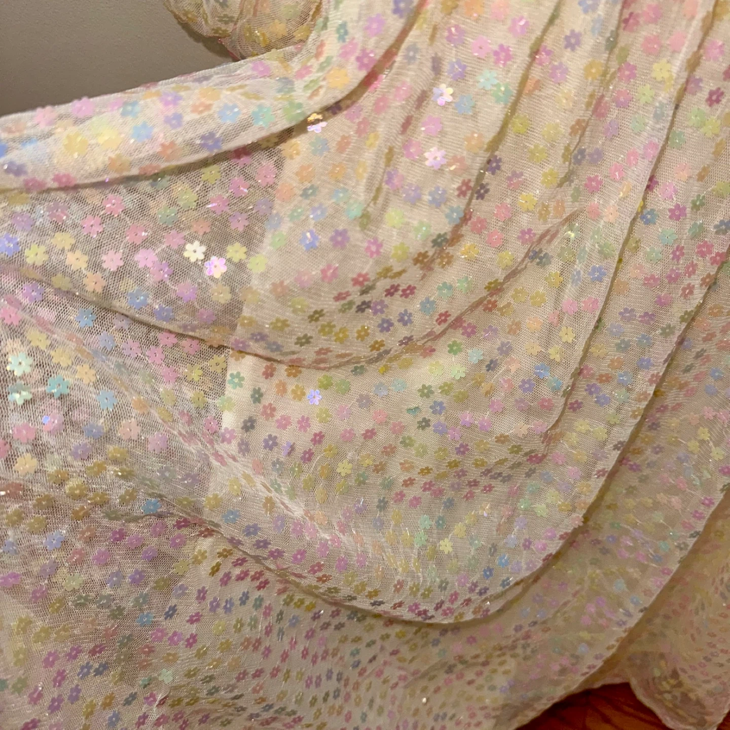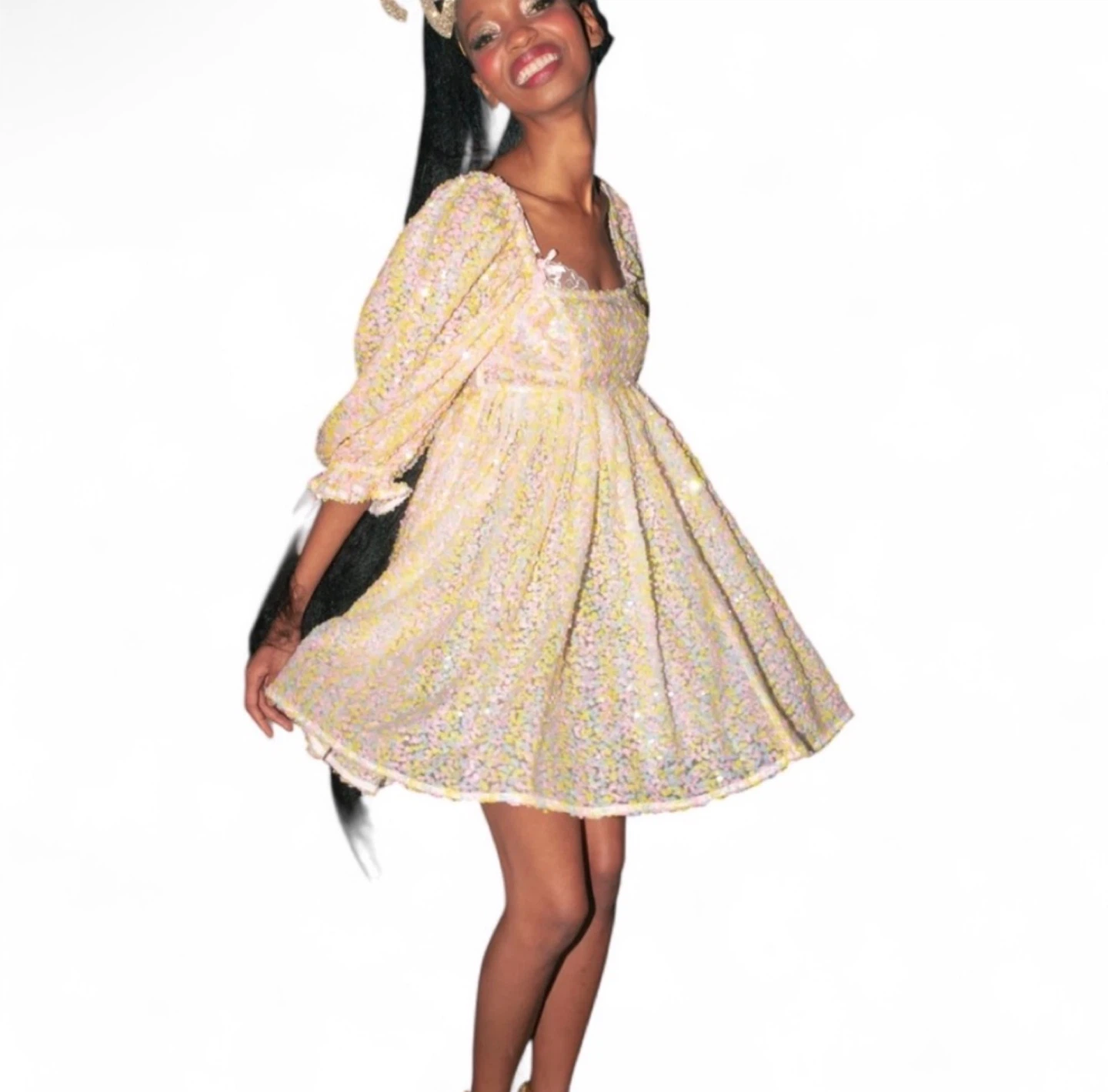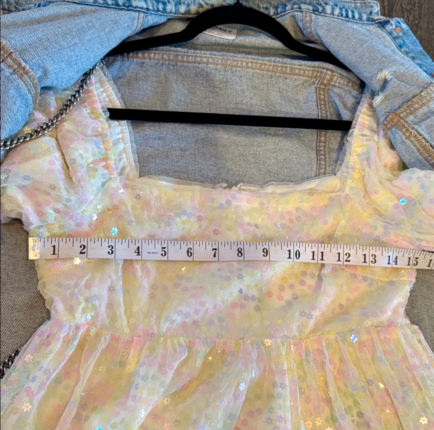 Altar’d State Rainbow Floral Sequin Puff Sleeve Dress