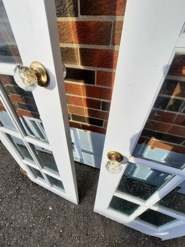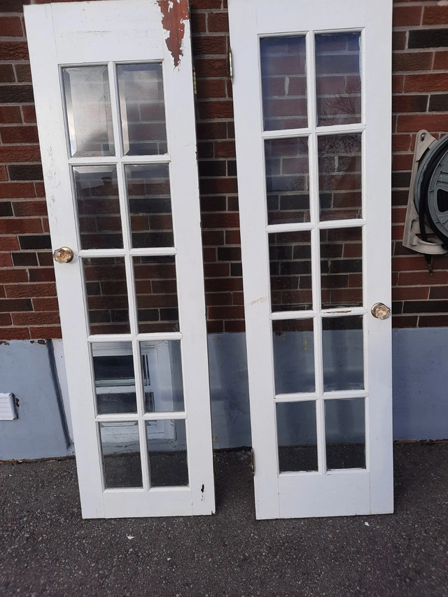 One is 22 5/8" wide, one is 23" wide Both 80" height. Will need to be repainted or paint stripped if you wanted natural wood. $50 for both, includes handles and hinges. Kennedy and St.Clair area in Scarborough.