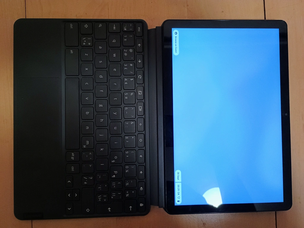 Selling a Lenovo Chromebook Duet tablet! It comes with its original keyboard attachment. This is great for on the go productivity or just relaxing and watching videos. The screen is in great condition and the keyboard is fully functional. Perfect for students or anyone needing a lightweight and portable device