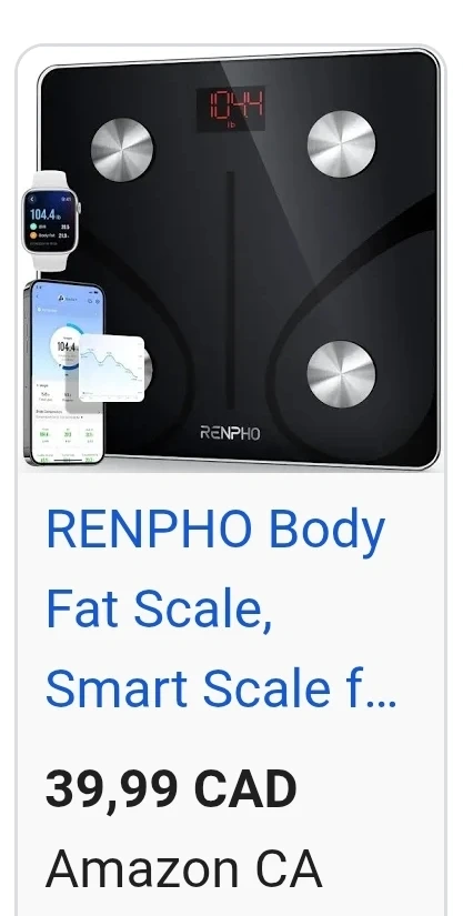 Selling a RENPHO body fat smart scale. It's in great condition and ready to help you track your fitness journey! The scale shows your weight and other body composition metrics through the RENPHO app. Originally bought for $39.99 CAD