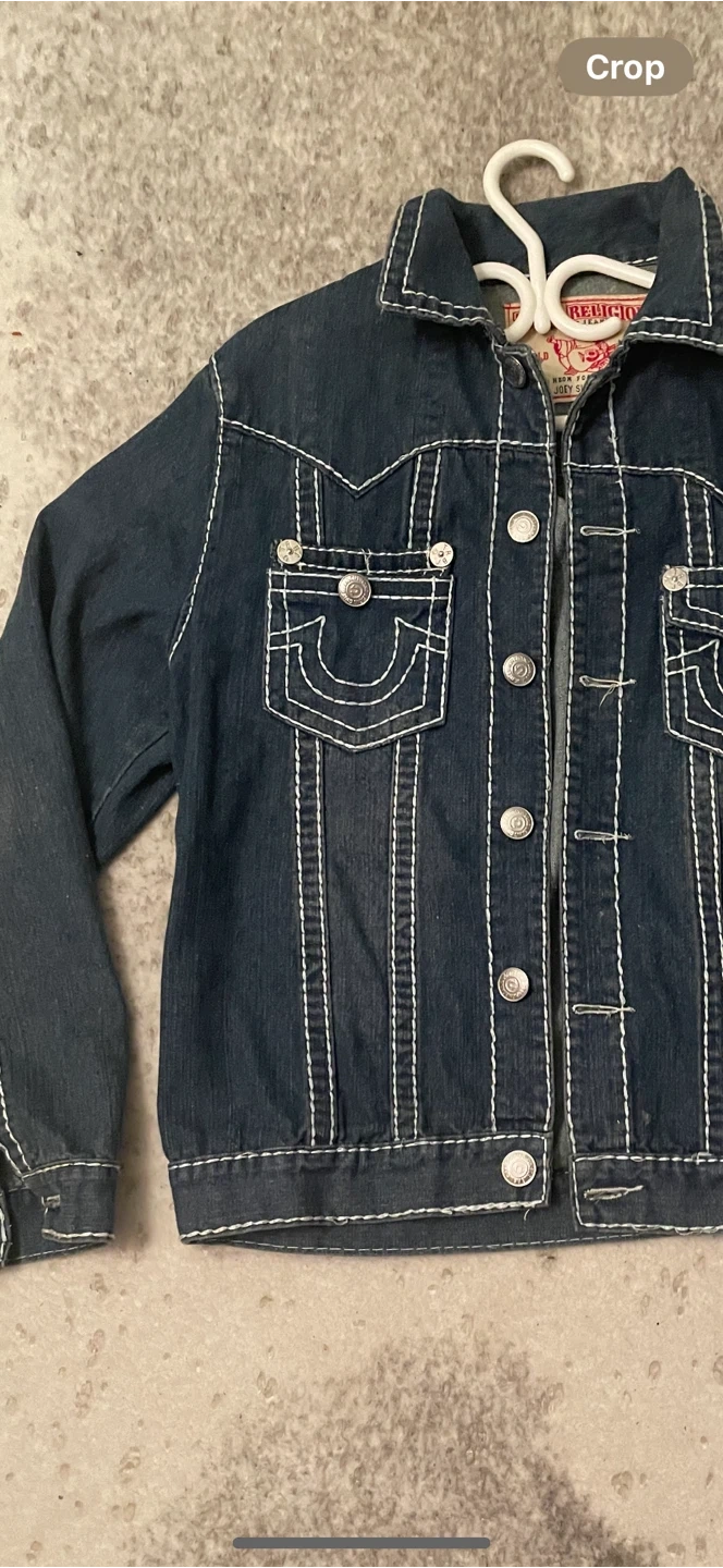 True Religion denim jacket with white stitching detail. Like New ! Size M/L