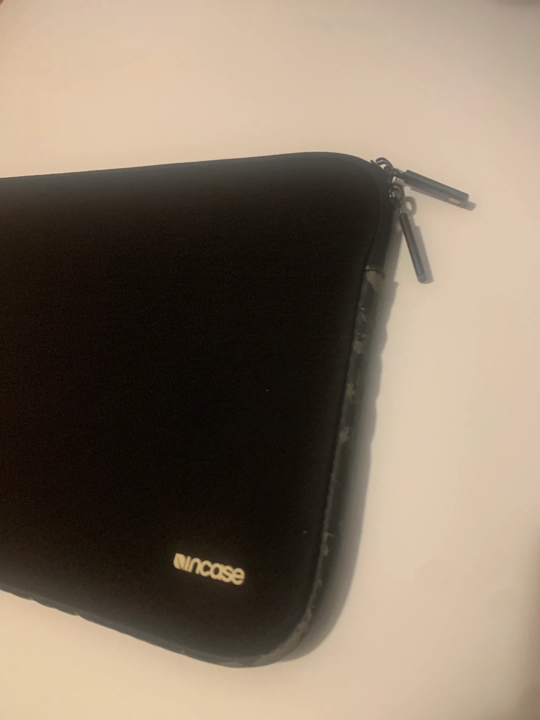 Black Incase laptop sleeve. Some signs of wear, as seen in the photos, but still life left in it! Perfect for protecting your laptop on the go.