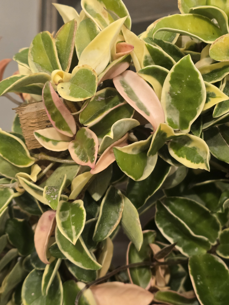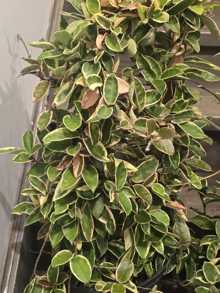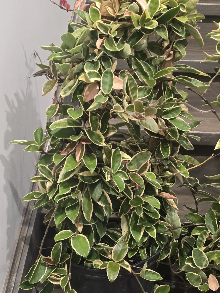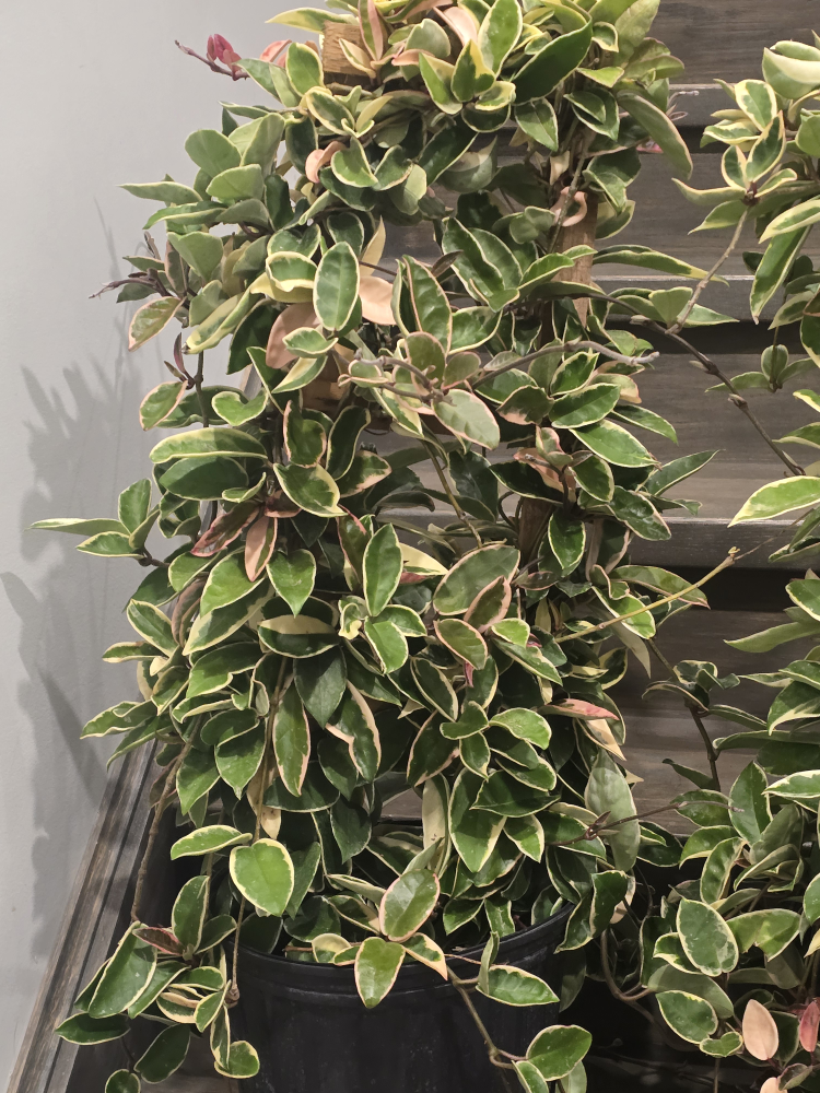 Selling a lovely Hoya Tricolor plant! It's a beautiful plant with variegated leaves that add a touch of green and cream to any space. This plant is relatively easy to care for and is known for its trailing vines. It's currently potted and ready to brighten up your home!