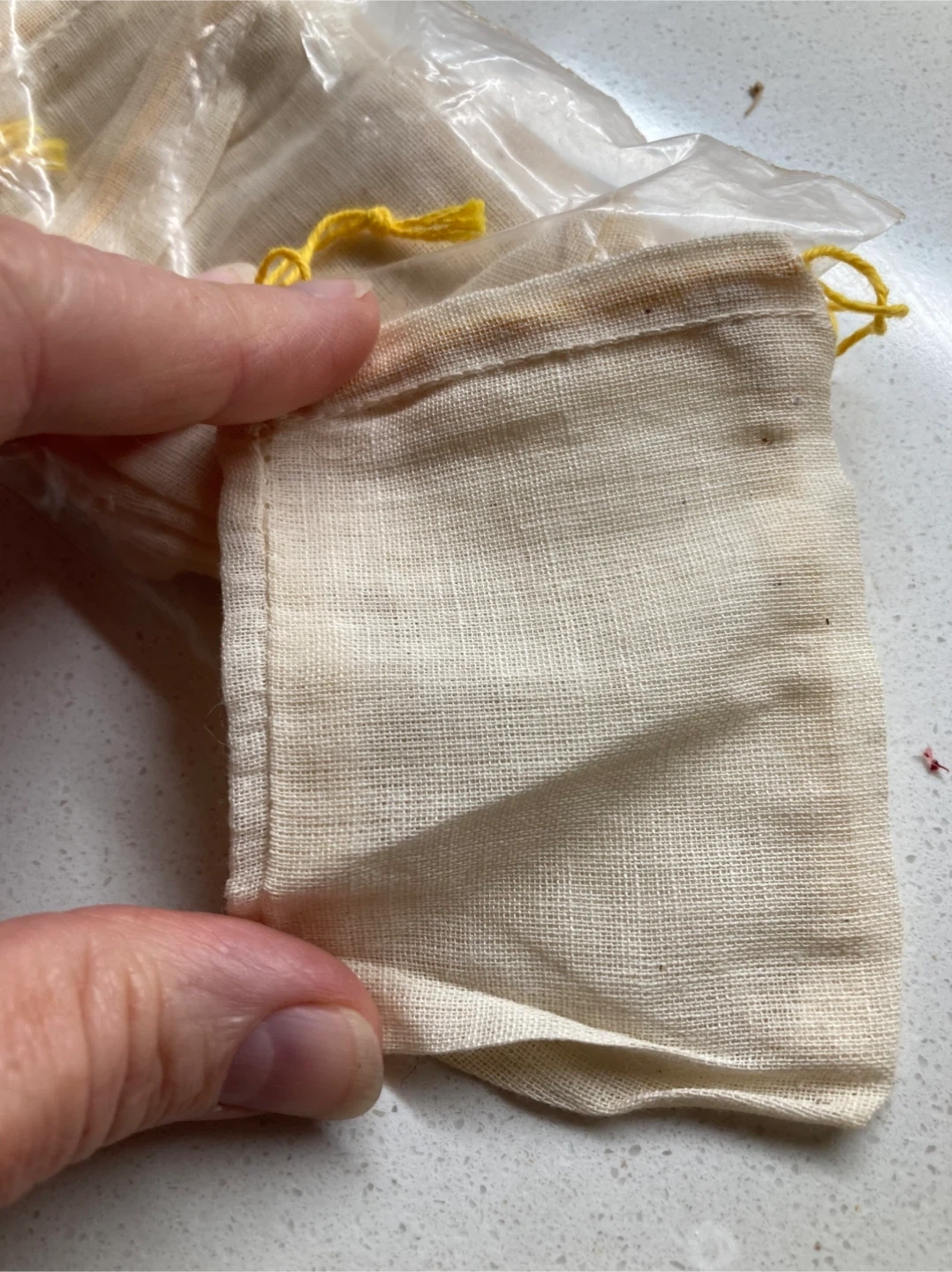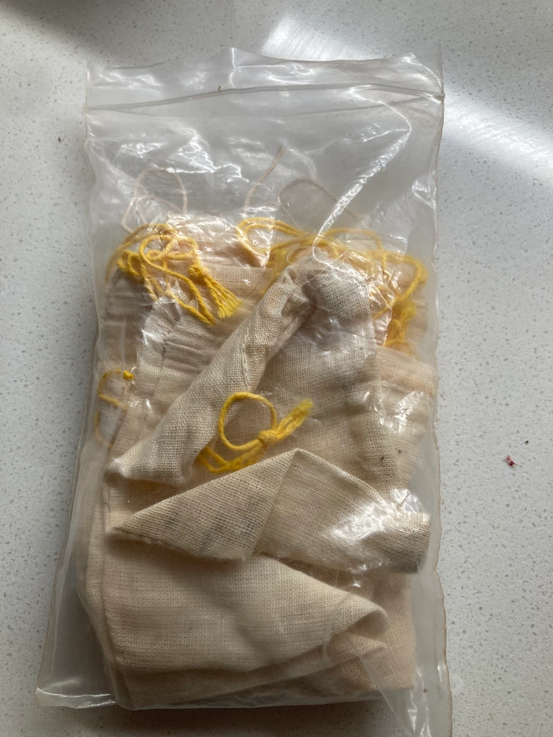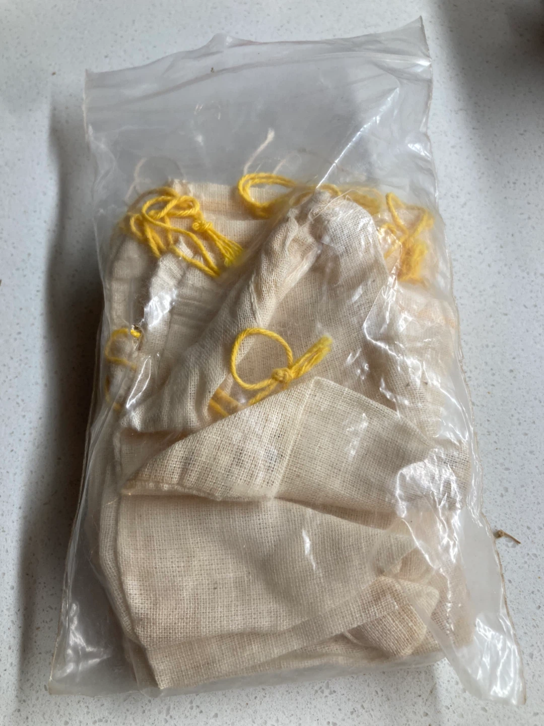 I'm selling a bag full of 7 reusable muslin tea bags. You can also use them for herbal sachets or anything else you can come up with! They're perfect for brewing your favourite loose leaf teas.