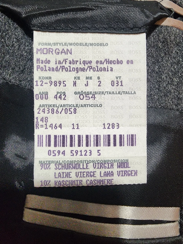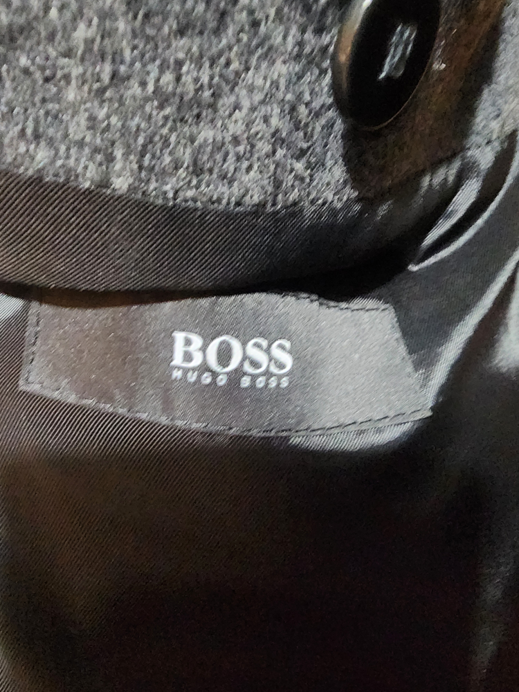 This is a handsome Hugo Boss Morgan coat, crafted from a luxurious blend of 90% virgin wool and 10% cashmere, offering both warmth and a soft touch. The coat is marked as a European size 54, which is equivalent to a Large size. Its only been worn less then a handful of times and is in very good condition. Selling because it a little to big for me.