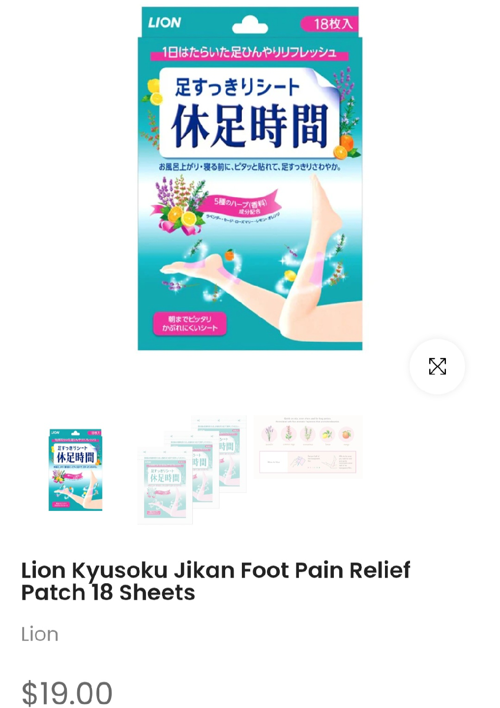 Lion Kyusoku Jikan Foot Pain Relief Patch 18 Sheets from Japan. Great for soothing your legs after long walks or hikes.