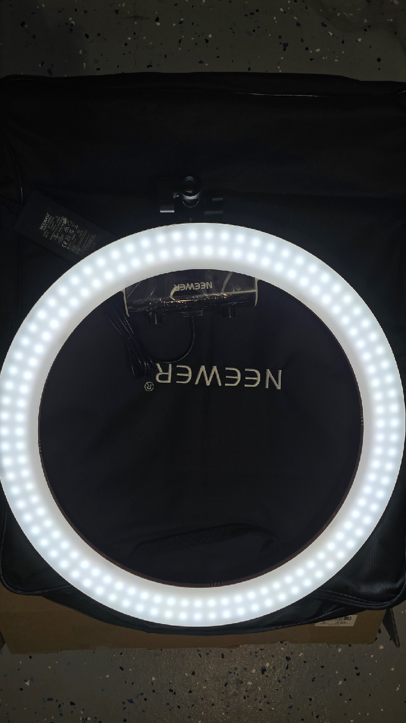 Selling a Neewer RP18B Pro LED Ring Light in excellent condition! It comes with its stand and carrying bag. Perfect for content creators or anyone needing good lighting