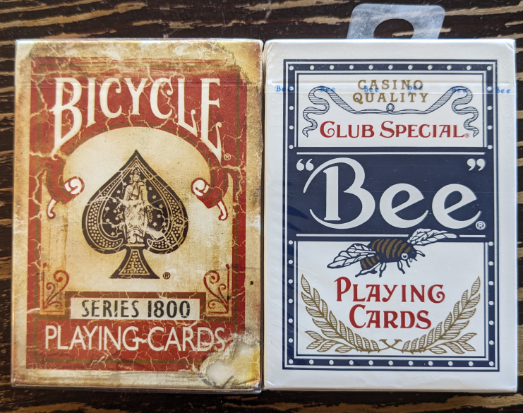 Selling two decks of playing cards! One is a Bee Casino Quality Club Special deck, and the other is a Bicycle 1800 Series deck. Both are sealed and ready for your next game night.