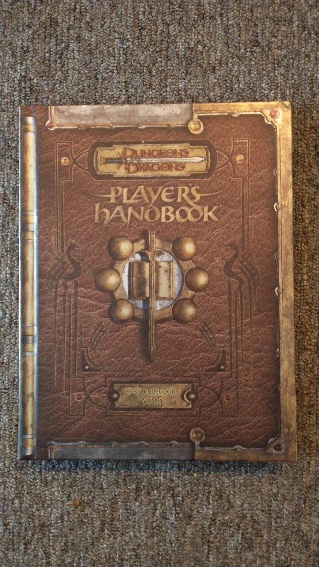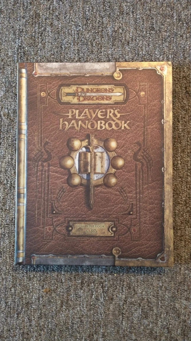 3.5e Player's handbook. new condition aside from one minor bend on a corner (see pics). pages and spine completely intact. only reason I'm getting rid of it is because I play 5e and I need more shelf space. see my other postings for other tabletop/rpg games and D&D/DnD books.